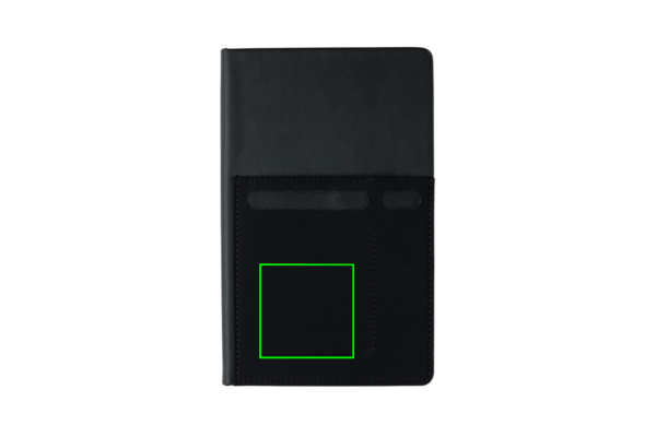 Блокнот формата А5 с 160 линованными страницами кремового цвета из бумаги плотностью 80 г/м2 внутри. На передней обложке есть гибкий карман для телефона, карман для ручки и большой карман для документов. Карман для телефона шириной 8 см подходит для iPhone 7 plus.