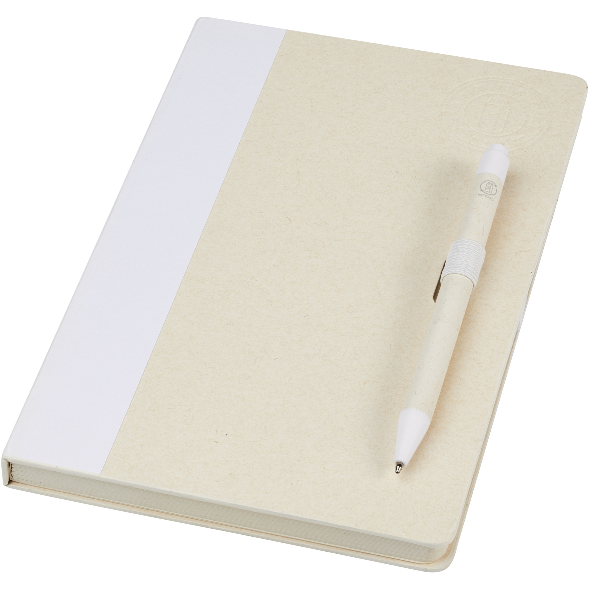Блокнот размером A5 и набор шариковых ручек. Блокнот имеет 80 линованных листов (80 г/м²) из переработанных коробок из-под молока (до 70%), цветную спираль для бумаги и петлю для ручки. В петле находится шариковая ручка с кнопочным механизмом, цвет которой соответствует цвету блокнота. Корпус ручки также изготовлен из переработанных коробок из-под молока, а кнопка, зажим и наконечник изготовлены из цветного PLA-пластика. Внутри ручки имеется черный стержень. Картонные коробки из-под молока собираются, сортируются, перерабатываются и превращаются в бумагу, таким образом действительно превращая мусор во что-то полезное.