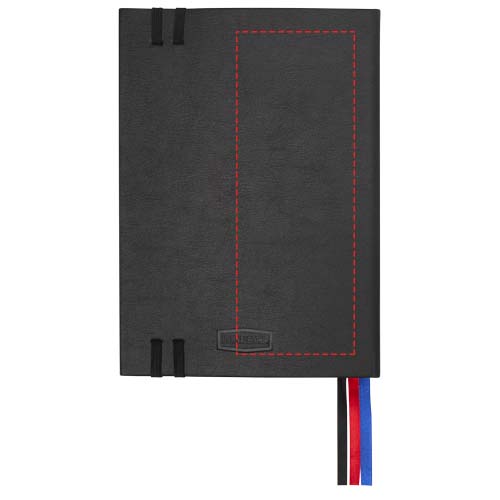 Блокнот Alder формата A5 изготовлен из переработанного пластика, имитирующего кожу, и имеет 192 листа из кремовой бумаги плотностью 80 г/м², оформленные в виде планировщика, идеально подходящего для ведения дневника и поддержания порядка в течение всего года. Имеет две эластичные резинки, три ленточные закладки (черная, красная и синяя), 200 разноцветных липких заметок (по 40 каждого цвета) и удобный бумажный кармашек для отдельных заметок. На задней обложке тиснением нанесен логотип JournalBooks, упаковано в белый бумажный конверт.