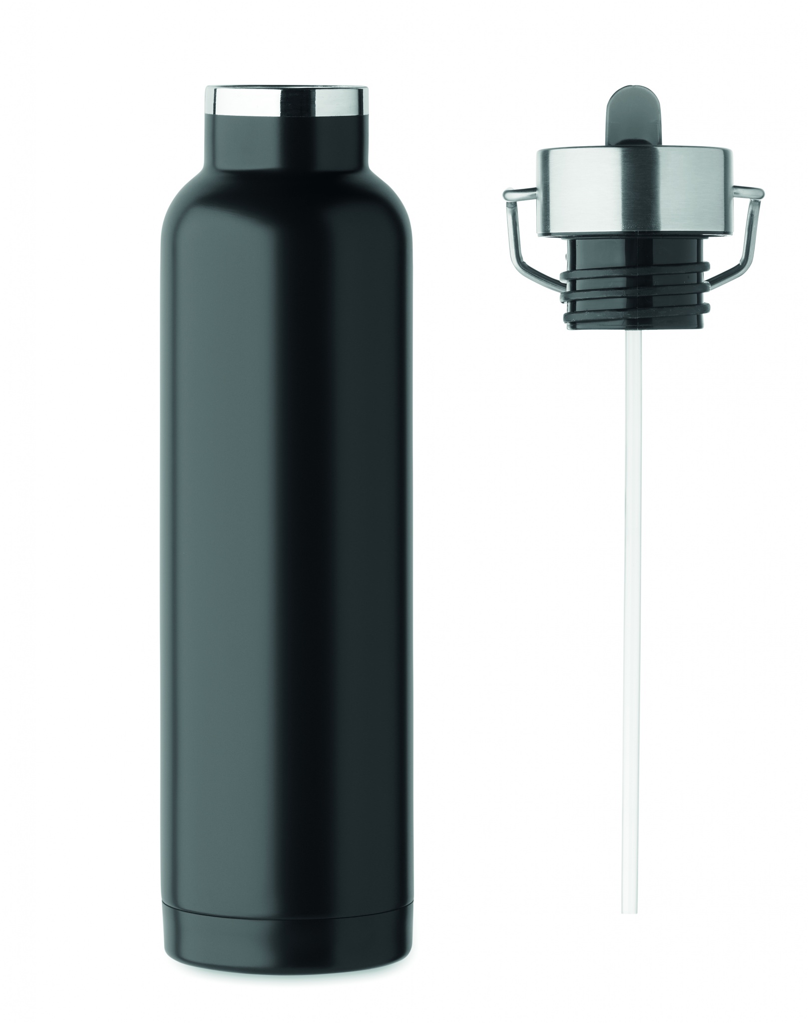 Бутылка с двойными стенками из переработанной нержавеющей стали (90%) и обычной нержавеющей стали (10%) со встроенной соломинкой и крышкой с ручкой. Герметична. Объем: 660 мл.