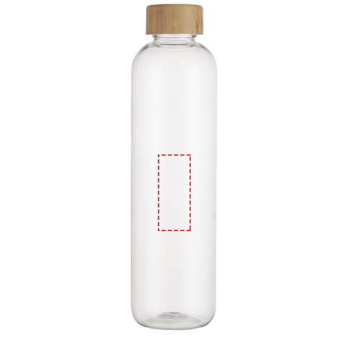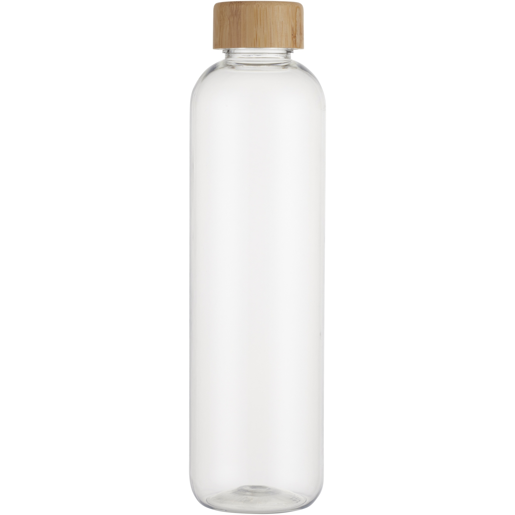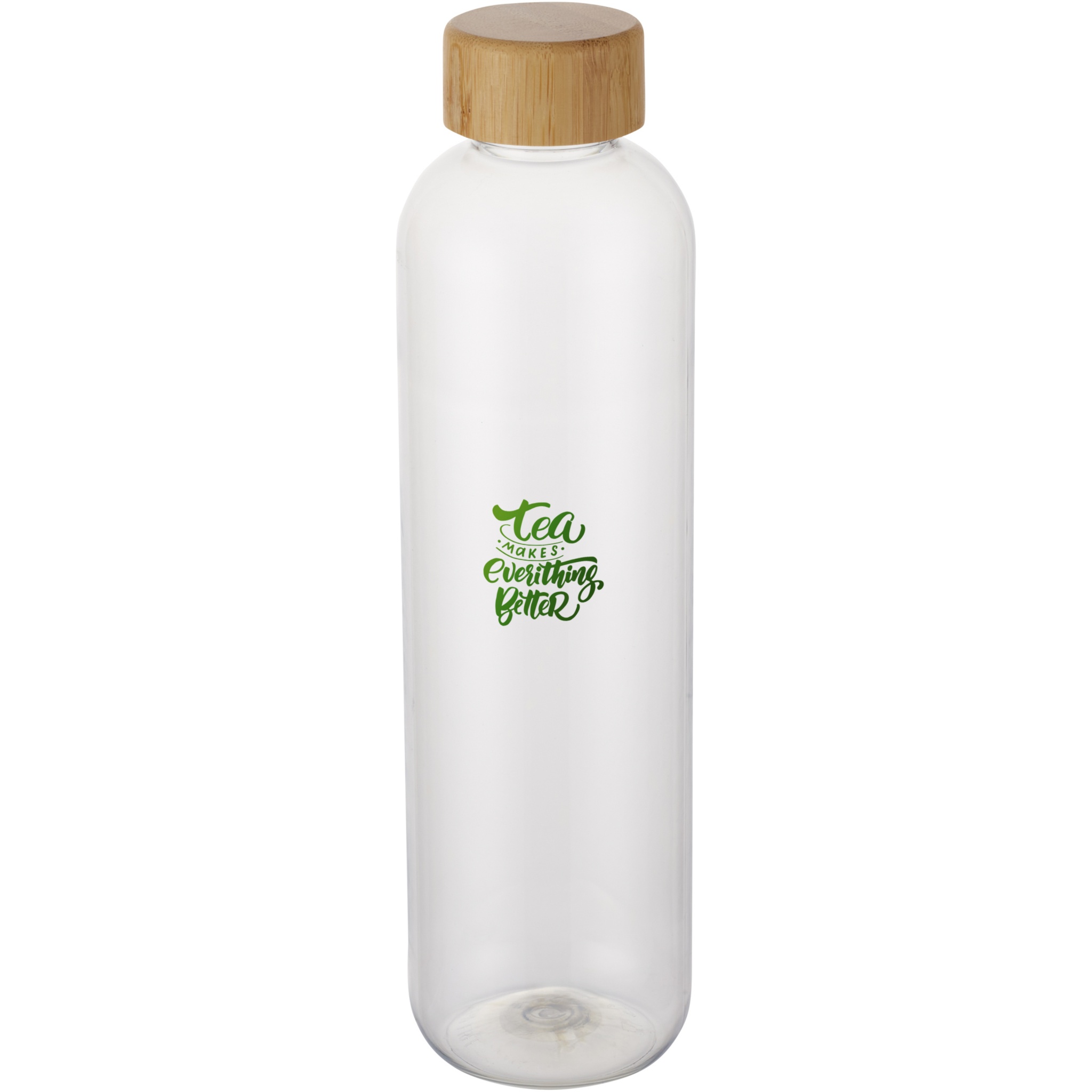Многоразовая бутылка для воды из переработанной пластмассы со стильной бамбуковой крышкой. Бутылка с одинарными стенками не содержит БФА, протестирована и одобрена в соответствии с немецким законодательством о безопасности пищевых продуктов (LFGB). Проверена на содержание фталатов и одобрена для использования в соответствии с правилами REACH. Бамбук производится из устойчивых, экологически и социально ответственных источников. Объем 950 мл. Рекомендуется мыть вручную. Поставляется в подарочной коробке из переработанного картона.