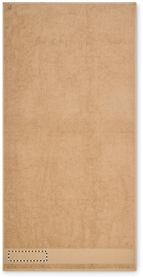 Bath towel made of 100% cotton, 380 gr/m² fabric with cotton hanger loop. Soft and absorbent design. Size 70 cm x 140 cm.