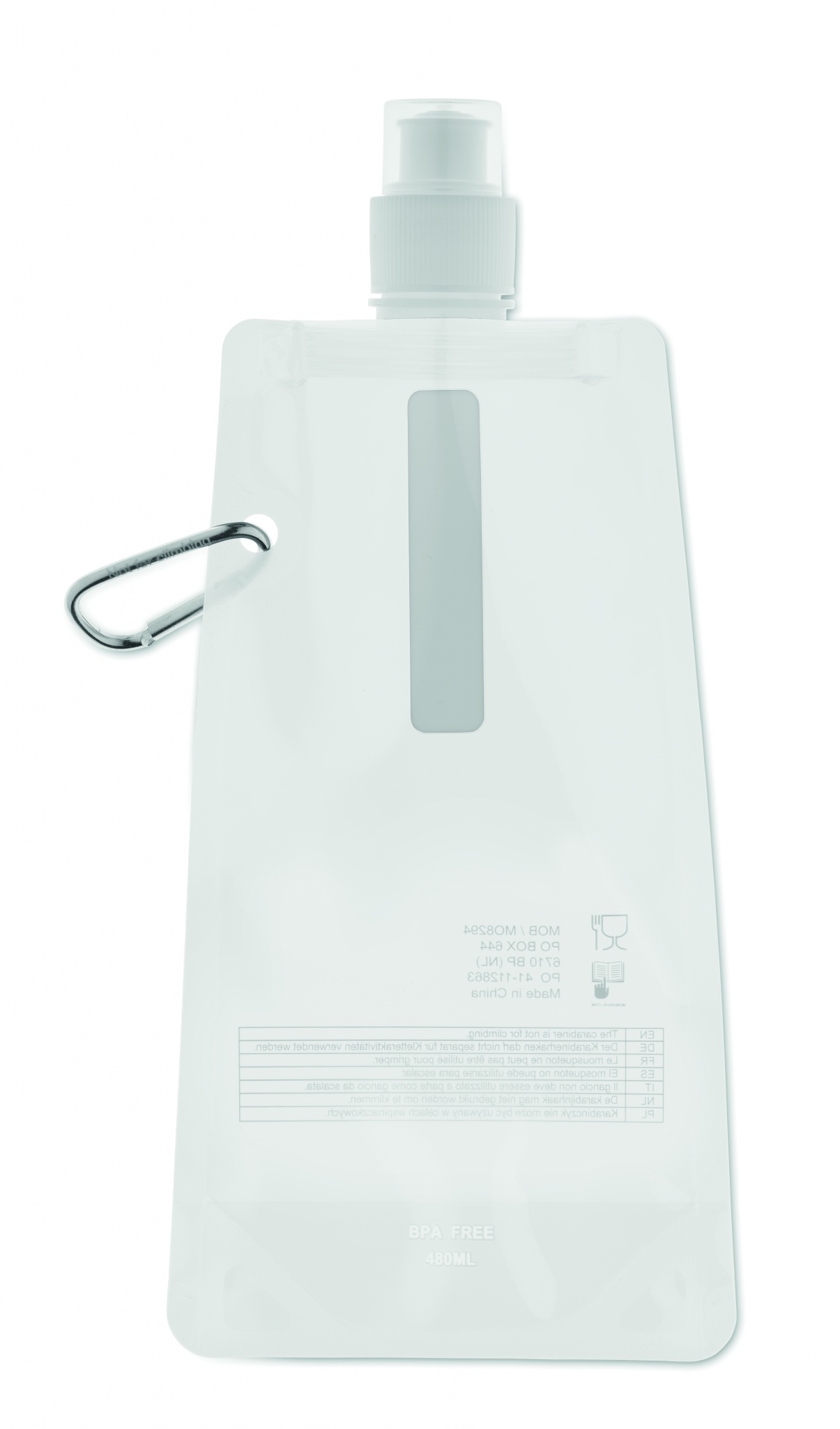 Полиэтиленовая фляга для воды с алюминиевым карабином. Не протекает.