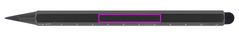 Ручка без чернил из алюминия с функцией касания и шкалой в см и дюймах. Грифель изготовлен из смеси графита и металла, что делает его чрезвычайно прочным. Ваш логотип будет выгравирован на свободном месте на корпусе.
