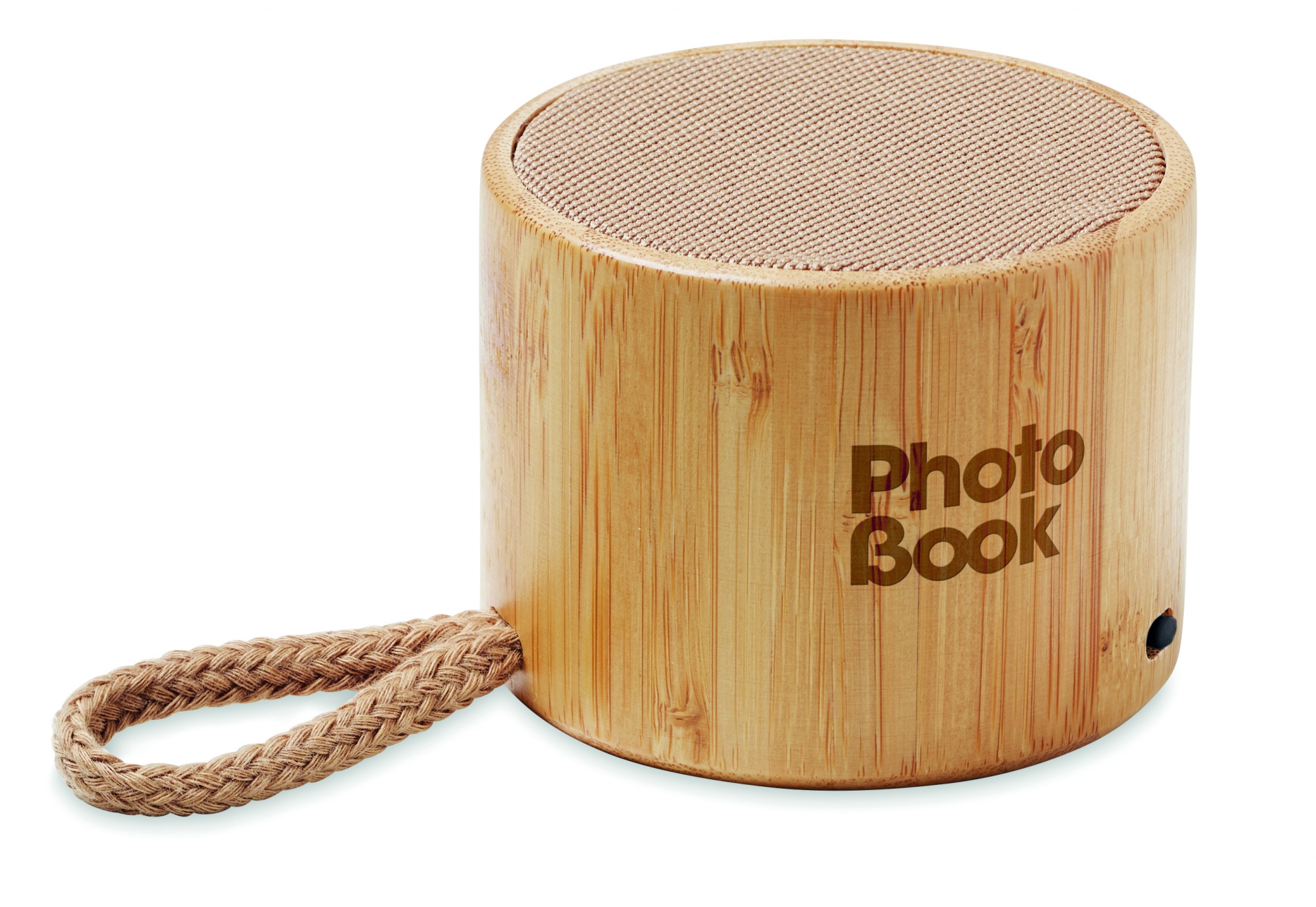 Беспроводная колонка 5.1 в бамбуковом корпусе с элементами из хлопка и ремешком. Световая индикация зарядки. Аккумулятор Li-POL 300 мАч в комплекте. А также порт для карт памяти SD и кабель AUX/USB. Функция громкой связи. Выходные данные: 3 Вт, 3 Ом и 5 В. Время воспроизведения около 3 ч.