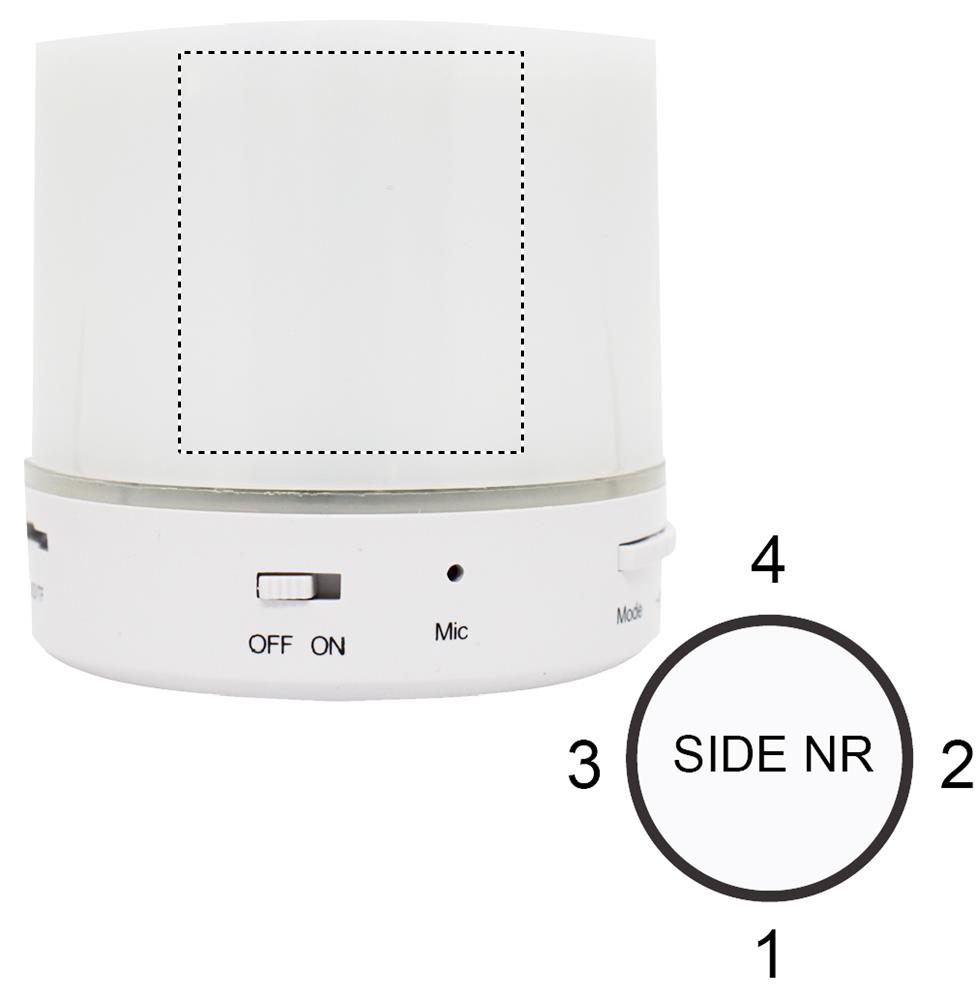 Колонка беспроводная круглой формы, переливающаяся 3 цветами. Есть функция хэндс фри ответа на звонок. Имеется разъем для SD карты и AUX/USB кабель. Работает от литий- ионного аккумулятора 450 мАч (включен).