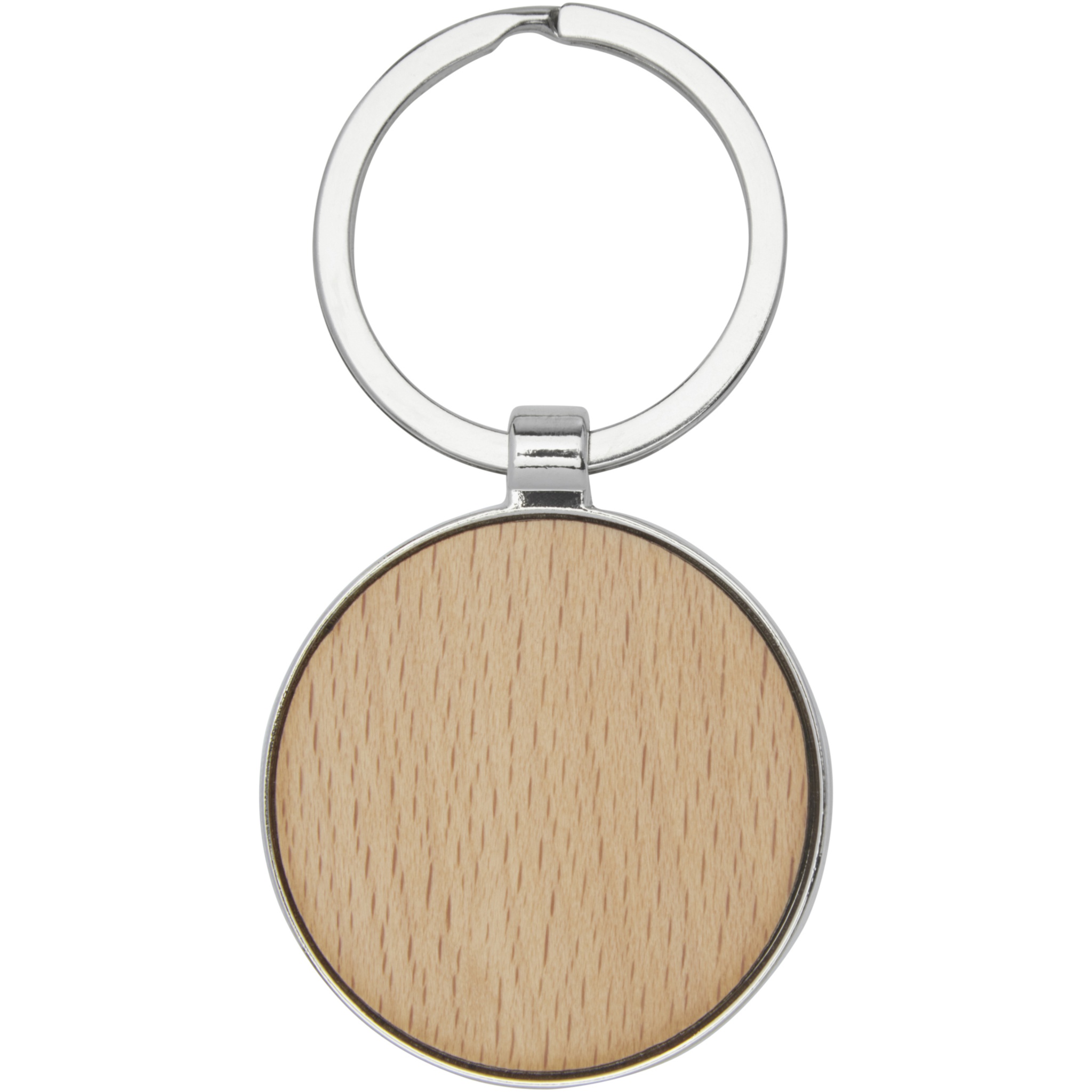 Круглый брелок премиум-качества из буковой древесины с металлическим корпусом из цинкового сплава. Поставляется в коричневой упаковке из шрифтовой бумаги. Диаметр брелка составляет 4 см. Пригодный для гравировки.