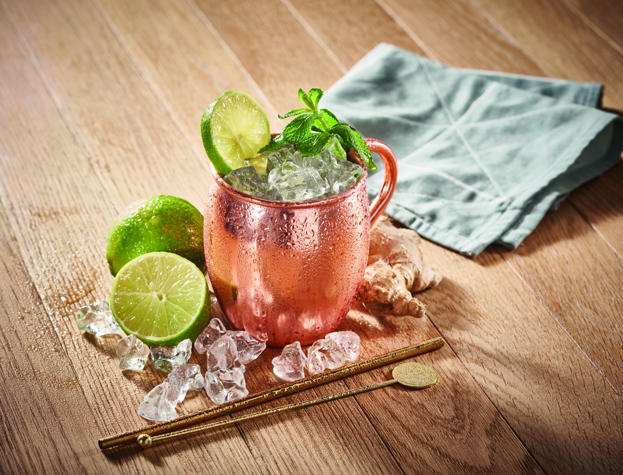 Коктейльная кружка из нержавеющей стали с медной отделкой. Объем 400 мл.