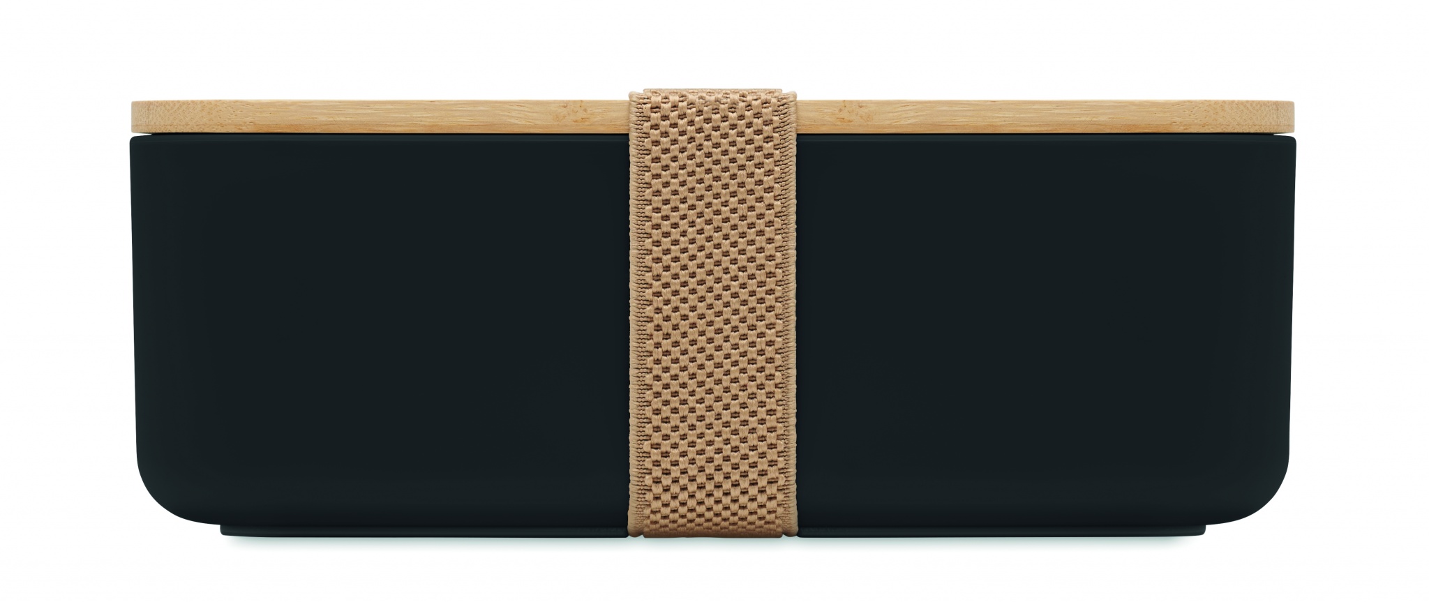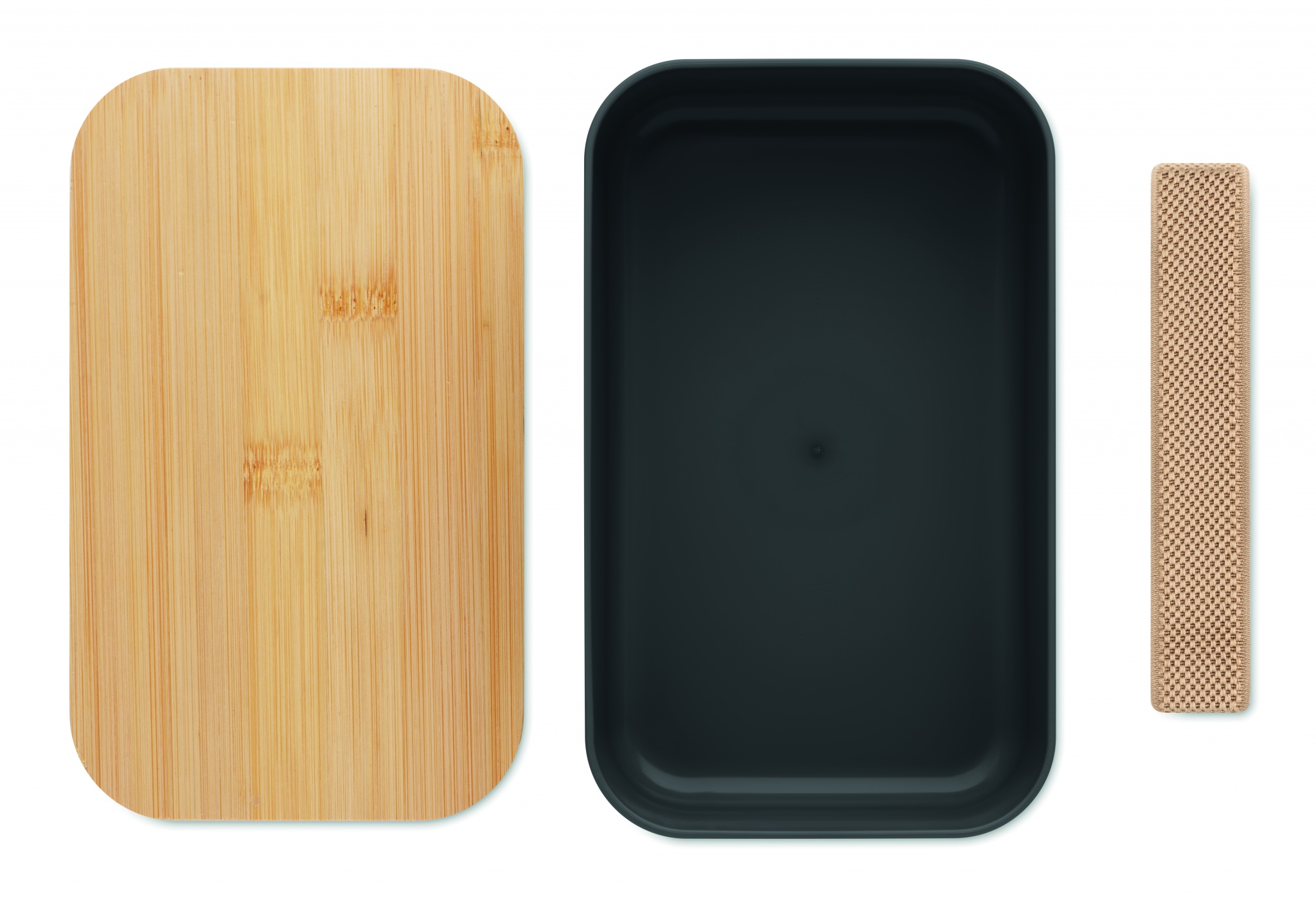 Ланчбокс из 100% биоразлагаемого пластика на основе кукурузы с бамбуковой крышкой и эластичной застежкой из RPET. Вместимость : 1000 мл.