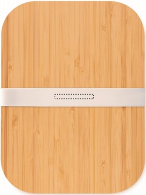 Ланч-бокс из стекла с бамбуковой крышкой и силиконовой лентой. Емкость 800 мл. Бамбук является натуральным материалом, поэтому могут быть небольшие различия в цвете