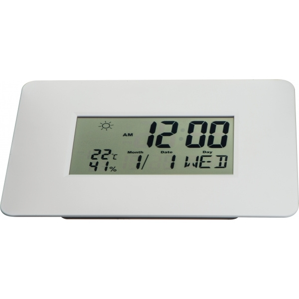 Цифровые настенные часы с календарем, будильником и функцией повтора сигнала, термометром и гигрометром (автоматическое обновление значений каждые 20 секунд) и дисплеем погоды. Эксклюзивные 2 батарейки AAA, заказывайте их одновременно (артикул 999400). температура измеряется в градусах по Фаренгейту или Цельсиюустановка цикла на 12 часов (AM 12:00) или 24 часа (0:00)определяет температуру от -50 до 70 °Cопределяет гидратацию от 20 до 89%отображает 3 режима погоды: солнечно, облачно, дождливо
