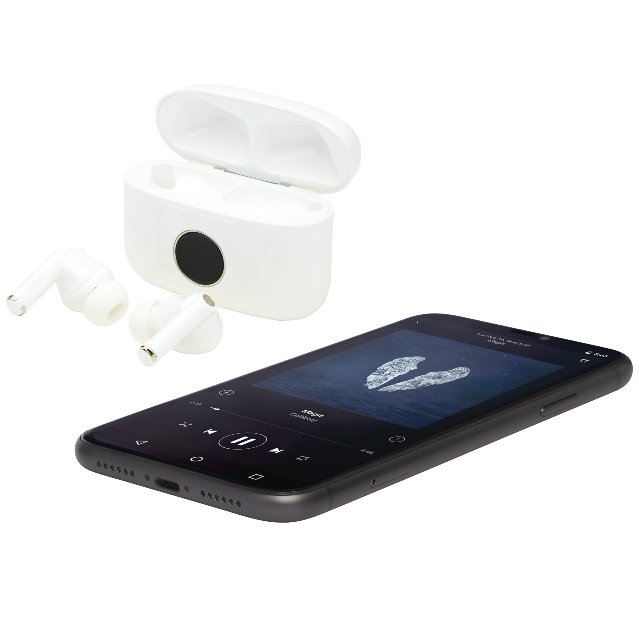 Беспроводные наушники на основе технологии TWS с системой активного шумоподавления (ANC) позволяют снизить шум максимум на 20 дБ, и тем самым обеспечивают фантастическое звучание музыки даже в поезде, самолете, автобусе и других местах с большим уровнем нежелательного шума. Встроенная многофункциональная кнопка для активации голосового помощника, удобное управление воспроизведением/паузой/ответом на звонок/отклонением/следующим треком/предыдущим треком/увеличением/уменьшением громкости. Благодаря «прозрачному режиму» наушники увеличивают звук извне за счет встроенной программы, что позволяет вам следить за окружающей обстановкой при ношении наушников. Время воспроизведения с максимальной громкостью составляет около 3 часов. Наушники можно полностью зарядить 4 раза от 0 до 100 % на одной зарядке.  Bluetooth® 5.0 с максимальным радиусом действия до 10 метров. Поставляется с 3 регулируемыми насадками и зарядным кабелем TPE. Поставляется в премиальной подарочной коробке.