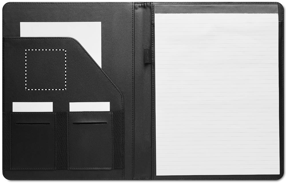 Папка формата A4 из двухцветного материала 300D RPET. Содержит внутренние отделения и петлю для ручки. В комплект входит разлинованный блокнот на 20 листов.