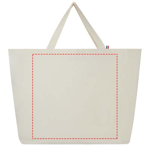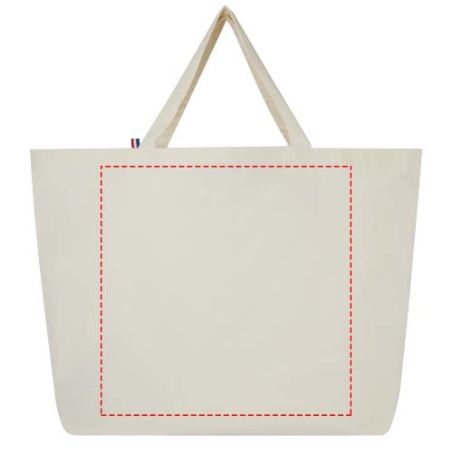 Эко-сумка разработана таким образом, чтобы выдержать использование в повседневной жизни и подходит для переноски тяжелых книг или продуктов. Сумка изготовлена из 100% переработанных материалов, что делает ее более экологичным выбором. Методы печати, доступные для этой эко-сумки, сертифицированы по стандарту GRS, что гарантирует прозрачность и сертификацию цепочки поставок. Смесь переработанного хлопка/полиэстера плотностью 200 г/м² обеспечивает долговечность и надежность и позволяет переносить вес до 14 кг.