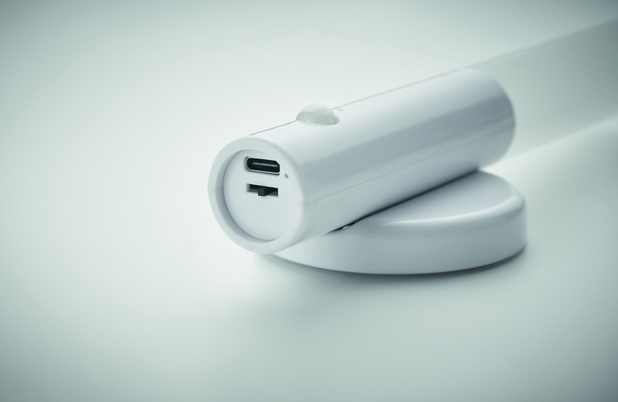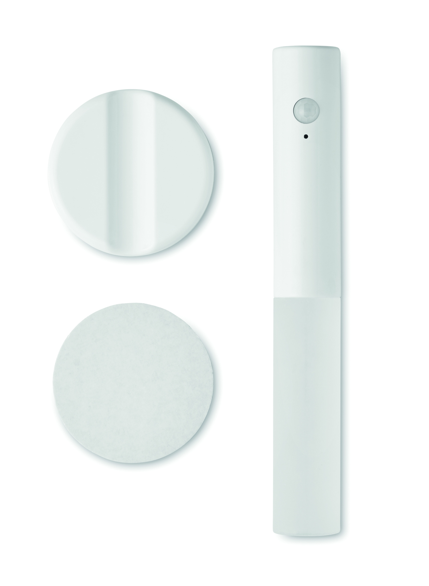 Emergency sensor torch light in ABS and acrylic with magnetic base. Built-in 300 mAh rechargeable battery and charging cable. Base can be mounted on the wall with included 3M sticker.
