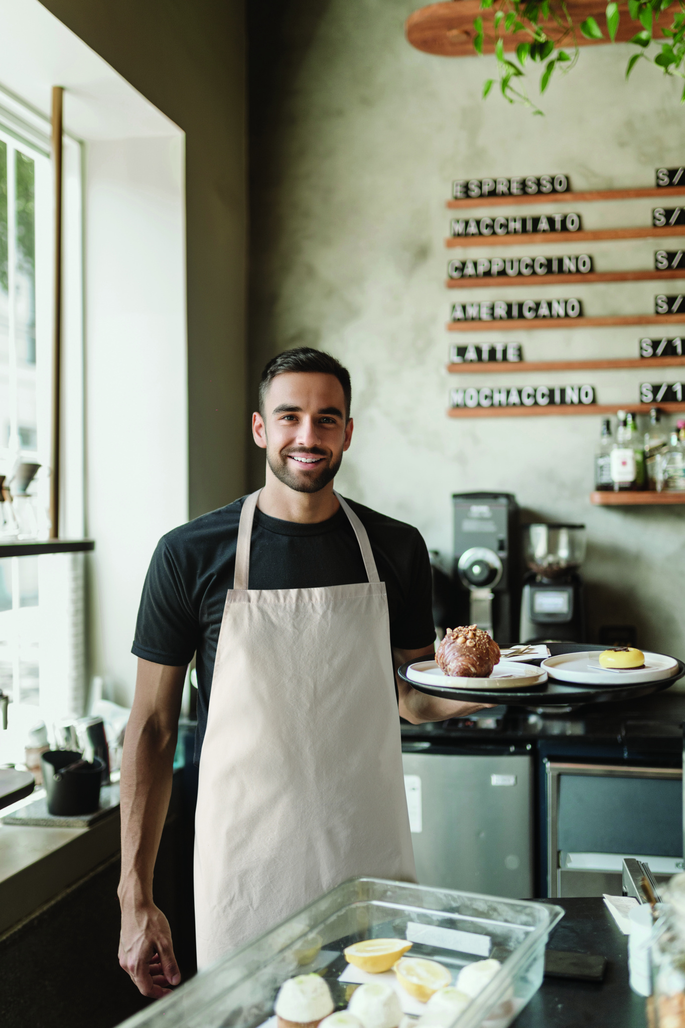 Recycled pre-consumer cotton apron in 180 gr/m² (70% recycled cotton and 30% RPET polyester).
