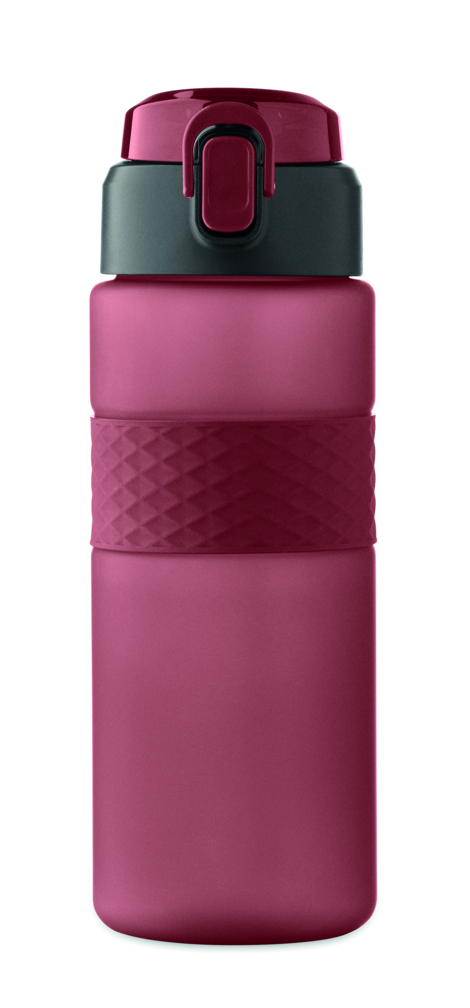 Drinking bottle made from RPET with silicone grip, PP flip-top lid and safety lock. Including integrated straw. Leak-free. Capacity: 700 ml.