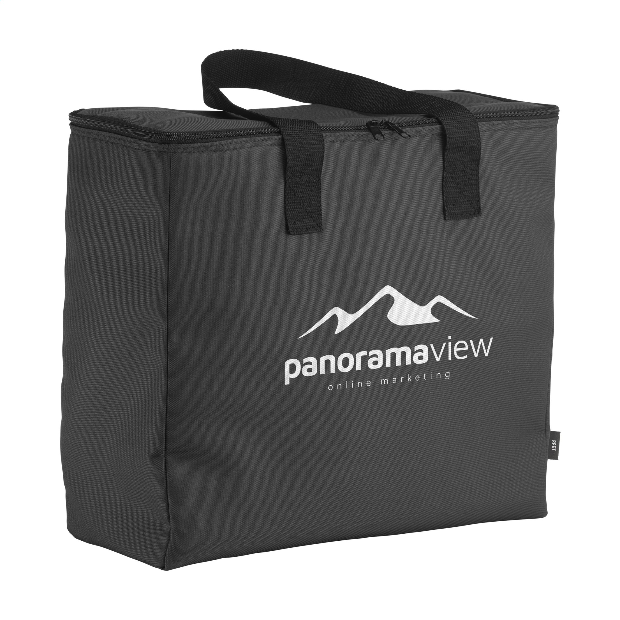 WoW! Большая, прочная сумка-холодильник с застежкой-молнией и ручками. Изделие изготовлено из полиэстера RPET 600D, материала, полученного из переработанных ПЭТ-бутылок и текстильных волокон. В этой сумке много места для хранения, и она может вместить до восьми 1,5-литровых бутылок. Эту сумку также можно использовать для переноски двухлитровых бутылок. Вместимость около 24 литров.