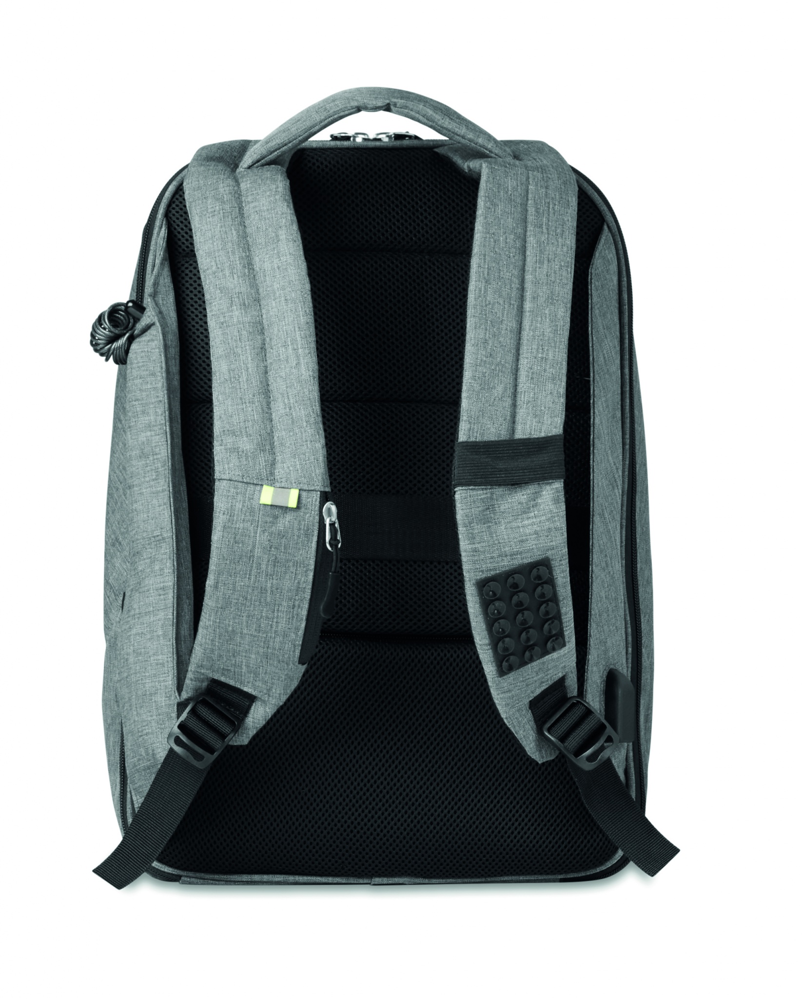 Рюкзак из полиэстера 600D со встроенным зарядным устройством от солнечной батареи с USB-портом и кабелем. Время зарядки составляет около 5-6 часов при прямом солнце. 2 основных отделения. Несколько внутренних карманов. Включает в себя один внутренний отсек для ноутбуков на 13 дюймов. Мягкие спинки и плечевые ремни. Дополнительный карман для планшета.