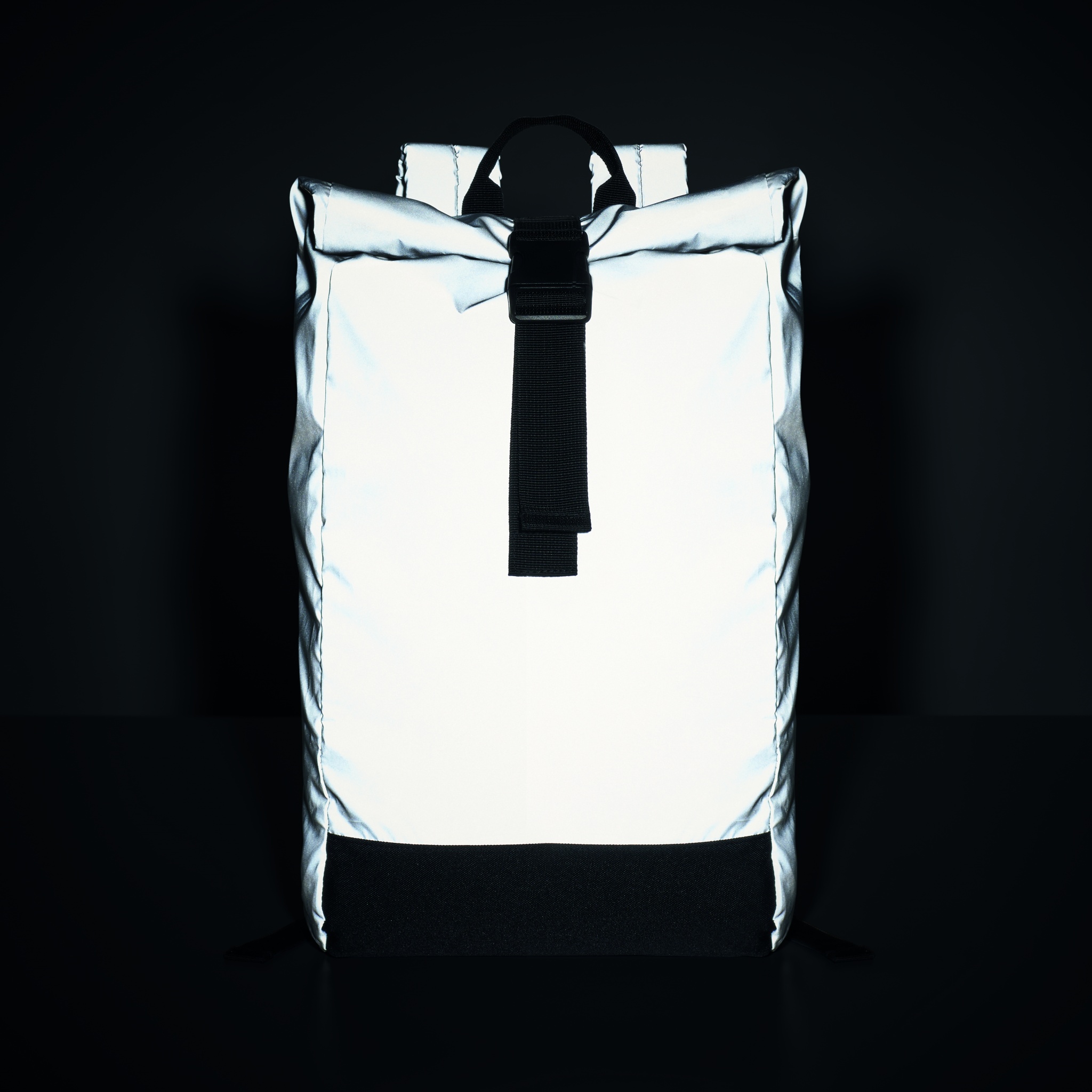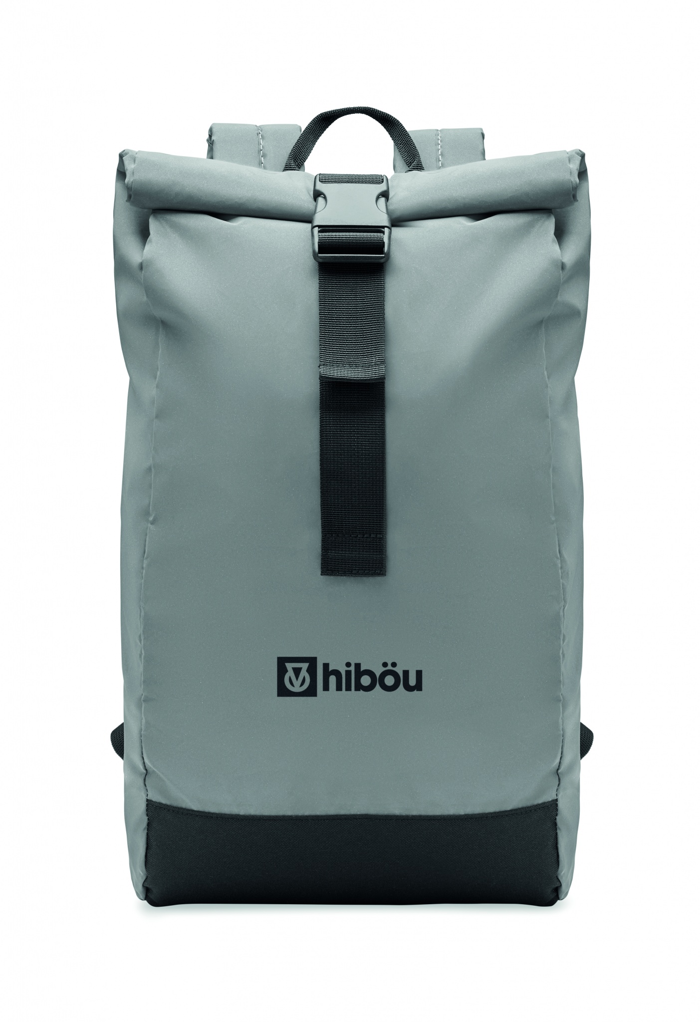 Рюкзак светоотражающий с отделением для ноутбука 15 дюймов из полиэстера 190T. Застежка rolltop. Спинка, лямки и дно с мягкой подкладкой. Передний боковой карман на молнии. Нижняя часть из переработанного полиэстера 600D.