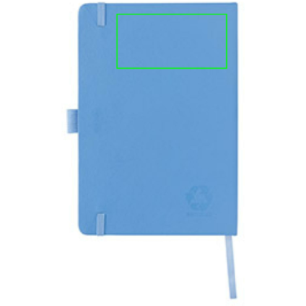 Записывайте свои мысли и творческие вдохновения в этом элегантном блокноте формата A5 с переработанной обложкой из сертифицированной RCS переработанной кожи. Его стильный дизайн может похвастаться красивой отделкой, что делает его изысканным выбором для ваших письменных нужд. Блокнот оснащен 80 листами/160 страницами высококачественной 70 г/с белой линованной переработанной бумаги RCS. Он также оснащен вертикальной резинкой и удобной петлей для ручки, что добавляет ему практичности и очарования. Общее содержание переработанного материала: 75% от общего веса изделия.