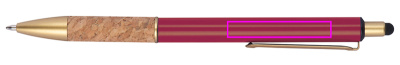 Металлическая шариковая ручка с золотыми аппликациями, синим стержнем и пробковой зоной захвата. Ваш логотип будет выгравирован справа от зажима.