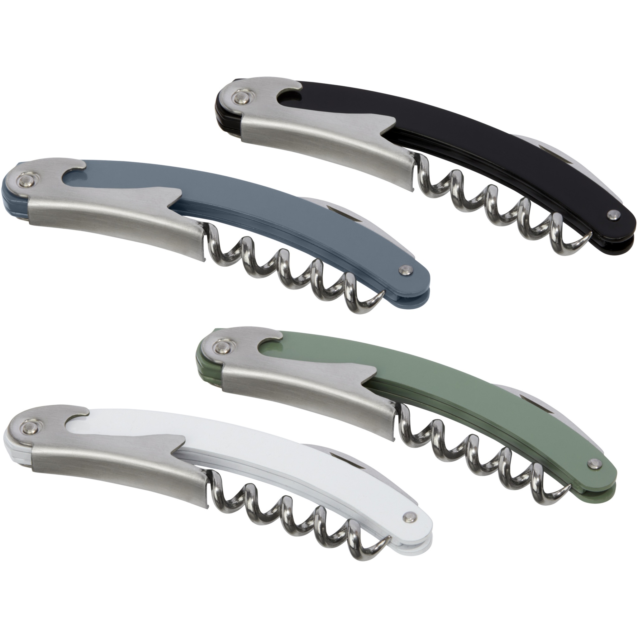 Складной нож из нержавеющей стали с цветным корпусом с обрезчиком для фольги и открывалкой для бутылок.