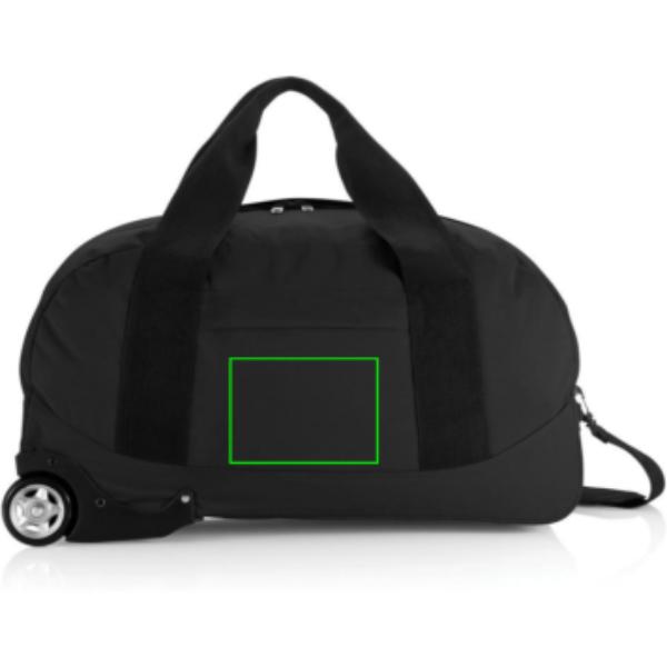 300D плотная сверхпрочная ткань. С выдвижной системой тележек, серебристыми колесами и регулируемым плечевым ремнем. Один передний карман и одно основное отделение на молнии.