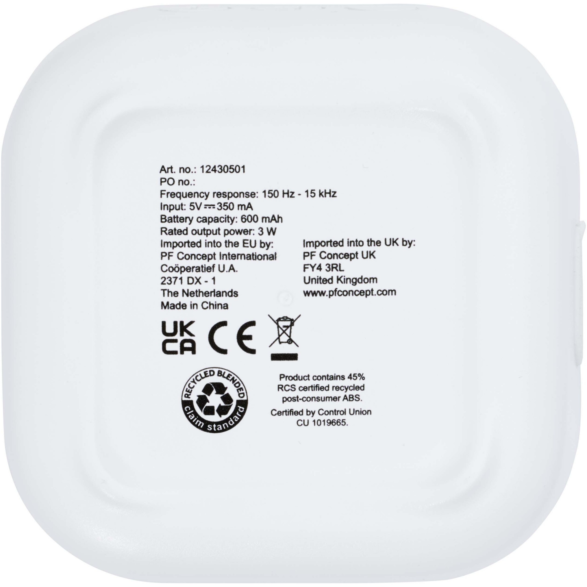 Колонка с функцией Bluetooth® мощностью 3 Вт, изготовленная из переработанных материалов по стандарту RCS, воспроизводит музыку, подкасты и т. д. с любого устройства с поддержкой Bluetooth®, что делает ее идеальным компаньоном для любого случая. Колонка оснащена встроенными элементами управления музыкой и микрофоном для телефонных звонков и онлайн-встреч. Наслаждайтесь прослушиванием музыки до 3-4 часов на максимальной громкости. Время зарядки составляет приблизительно 3 часа. Bluetooth® 5.3 с радиусом действия около 10 метров. Поставляется с руководством пользователя и зарядным кабелем USB-A на Type-C длиной 30 см. Упаковано в картонную коробку, на 100 % переработанную из экологически чистых источников.