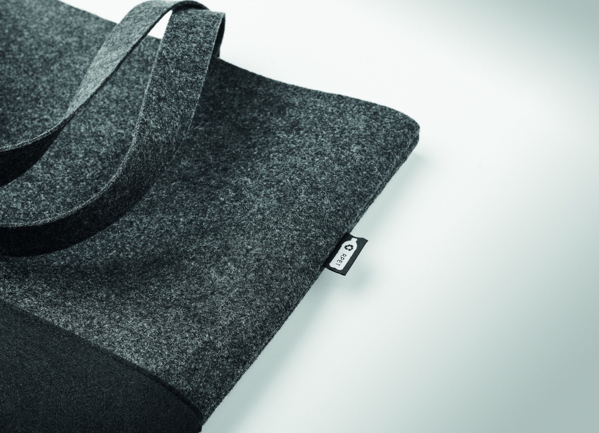 Сумка для покупок из переработанного фетра RPET с длинными ручками и разноцветным низом.