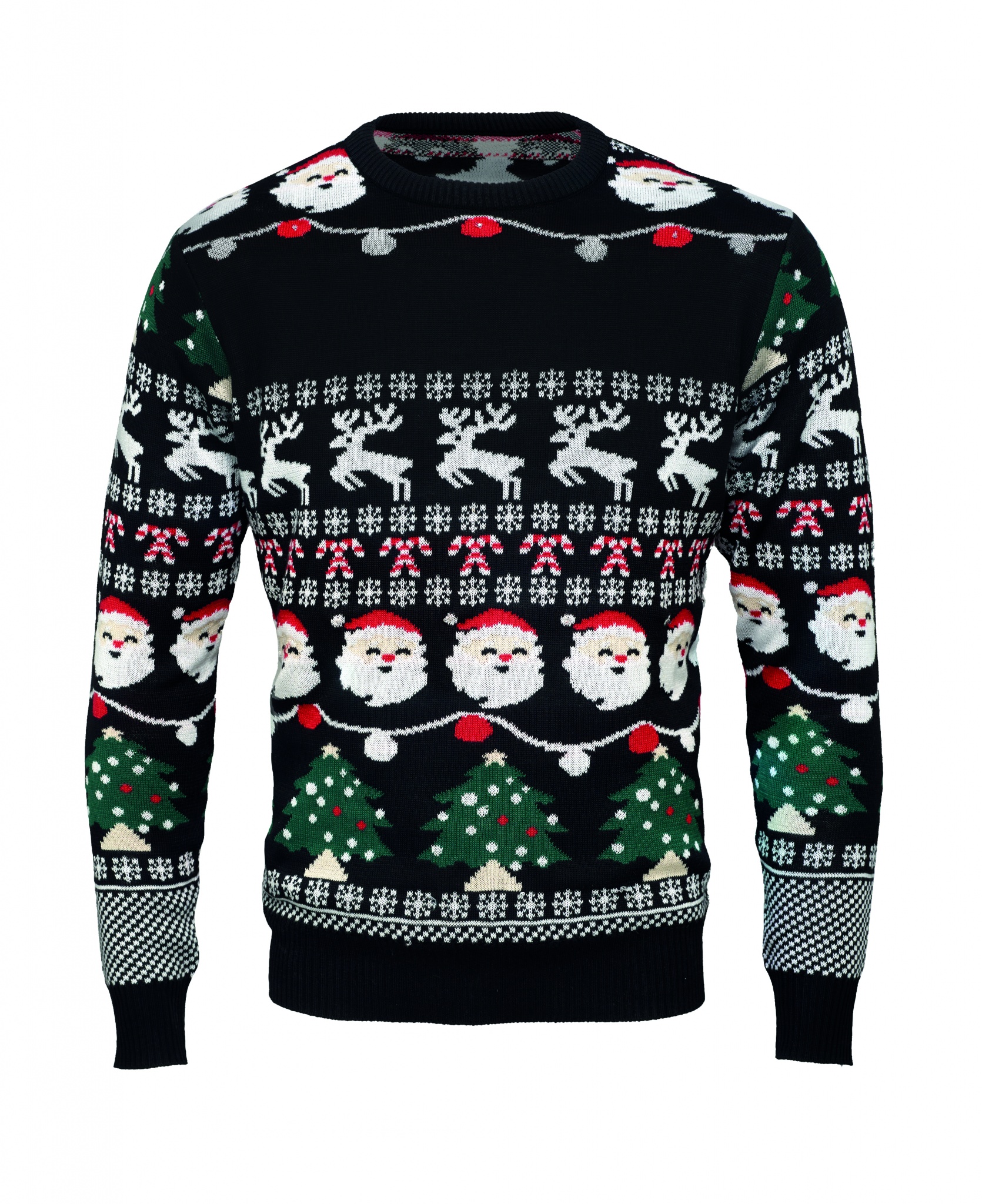 Свитер из акрила с 10 светодиодными лампочками. Размер: S/M. Удивите коллег на работе или родственников на семейном рождественском ужине этим праздничным свитером. Съемный карман для батареек.