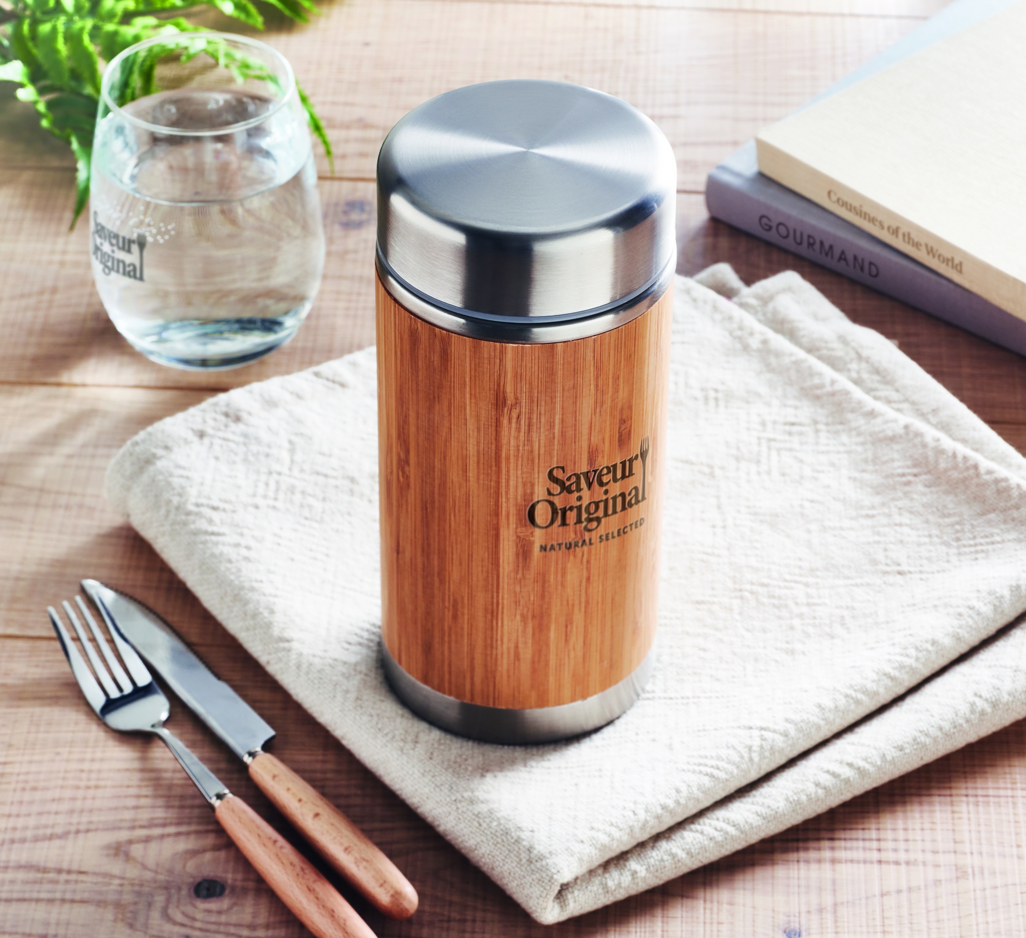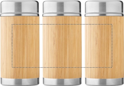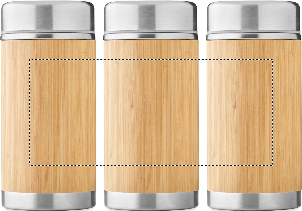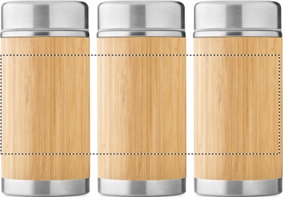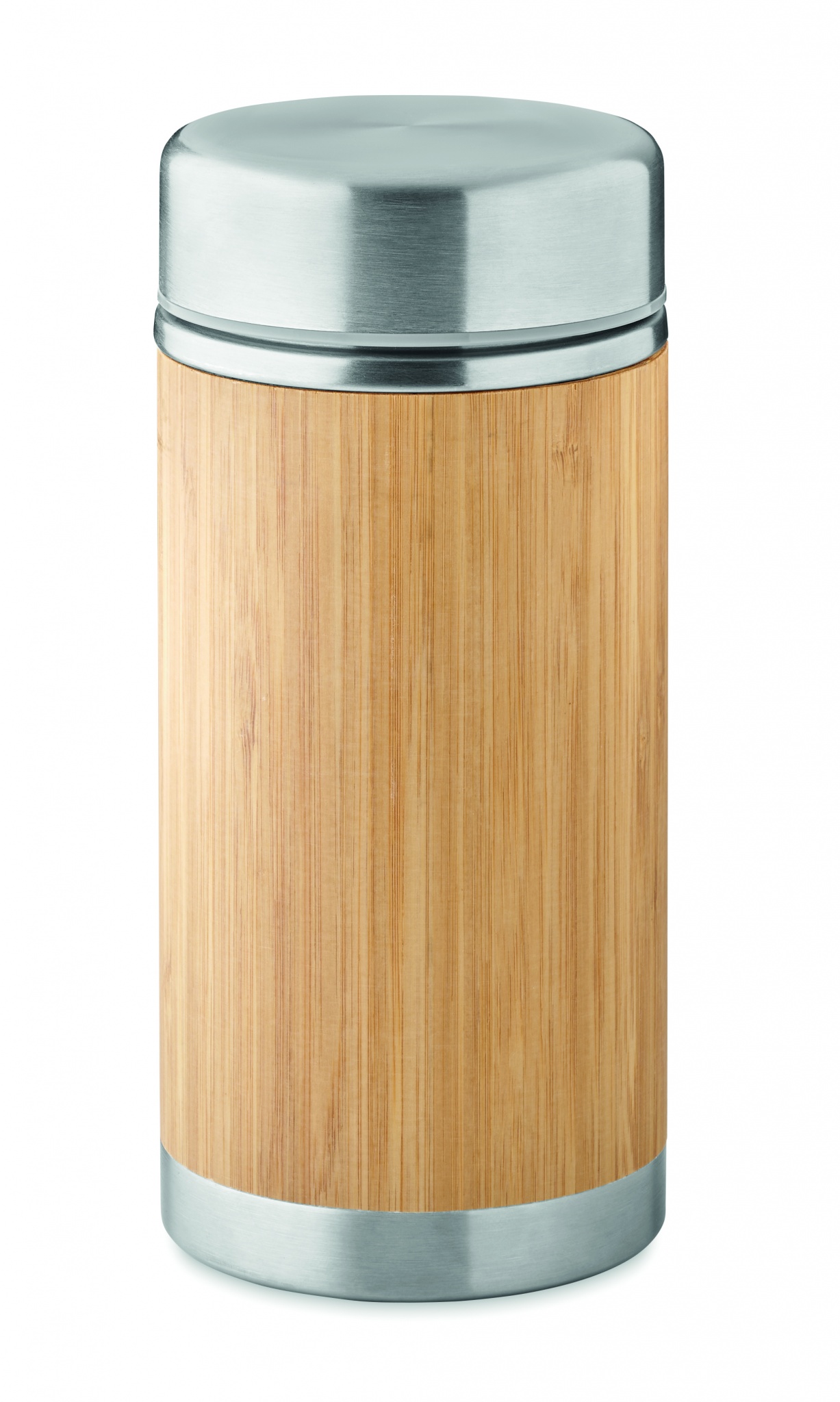 Термос для пищевых продуктов из нержавеющей стали с двойными стенками и завинчивающейся крышкой. Отделка из бамбука. Емкость: 600 мл.