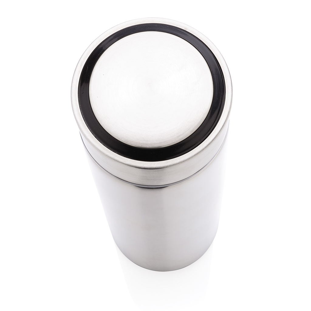 Сохраняйте кофе или чай приятными и поджаренными в этой вакуумной бутылке из нержавеющей стали с крышкой из матового металла. Бутылка оснащена герметичной винтовой крышкой и позволяет пить с любой стороны. Широкое горлышко позволяет легко мыть. Емкость 450 мл. Не содержит BPA.
