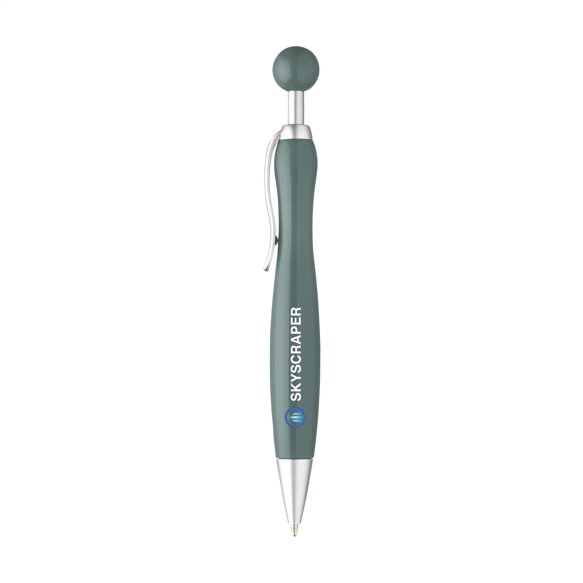 Шариковая ручка с синими чернилами и сферической кнопкой.