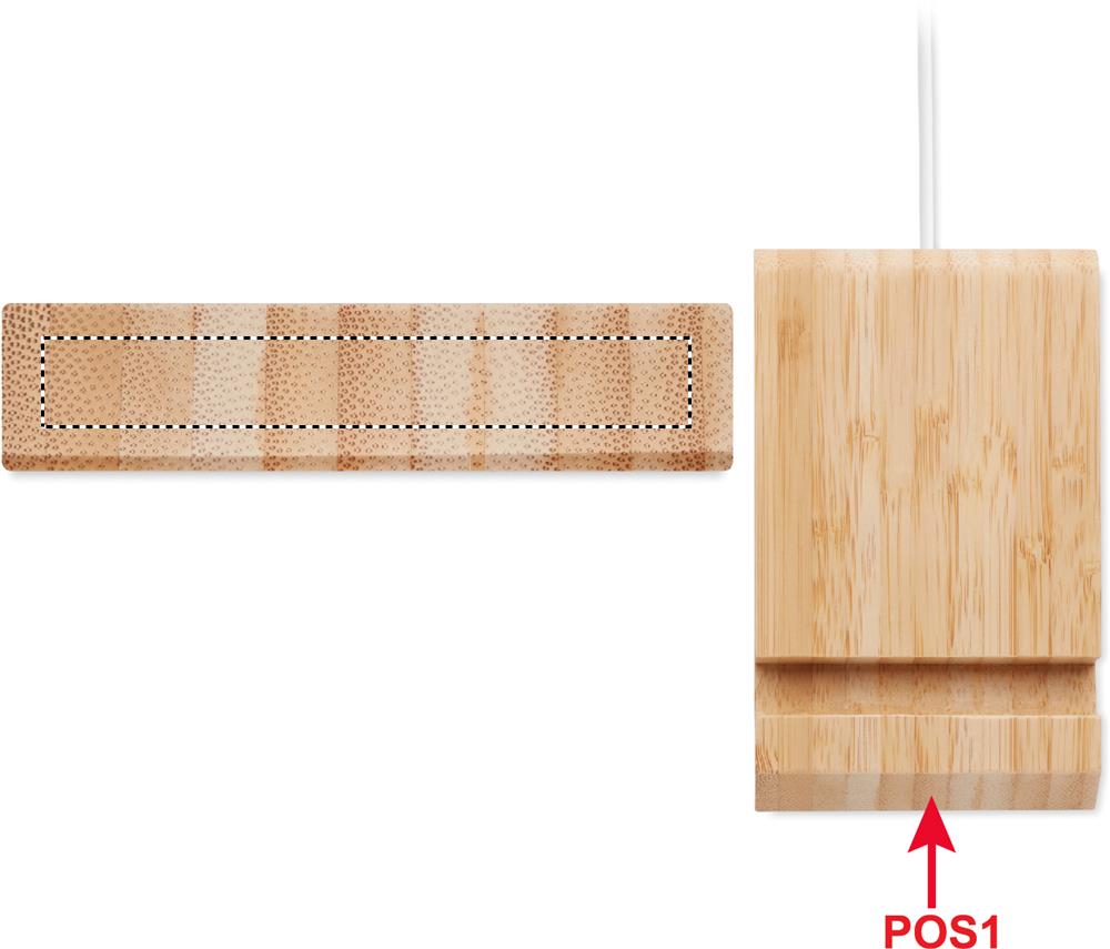 Беспроводное зарядное устройство из бамбука мощностью 10 Вт с функцией подставки. Выход: DC 9V/1.1A подходит для быстрой зарядки. Совместимо с последними моделями Androids, iPhone® 8 и новее.