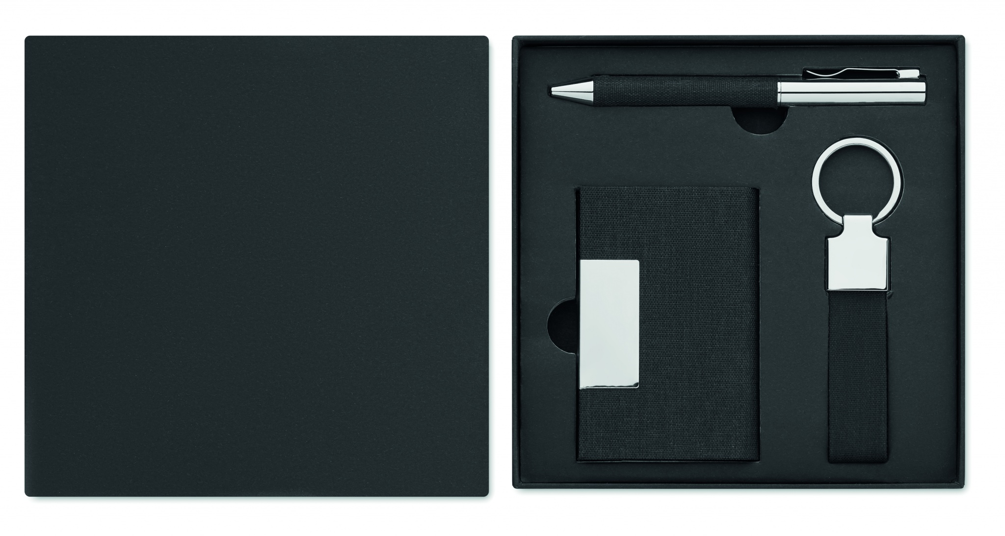 Logotrade profilprodukter bild: 3-delars presentset i en presentförpackning med anpassningsbar tryckning