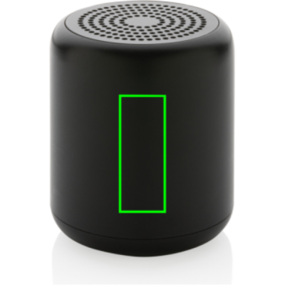 5W trådlös högtalare tillverkad av RCS (Recycled Claim Standard) certifierad återvunnen ABS och TPE. Totalt återvunnet innehåll: 38% baserat på total produktvikt. RCS certifiering säkerställer en helt certifierad leveranskedja av de återvunna materialen. Högtalaren har ett integrerat ljus i botten. Batteriet på 300 mAh ger en speltid på upp till 5 timmar, med BT5.0 för smidig anslutning och klart ljud, räckvidd upp till 10 meter. Med mikrofon för att besvara inkommande samtal. Laddningskabel i RCS certifierad TPE medföljer. Levereras i FSC® mix förpackning. Produkt och accessoarer är 100% PVC-fria.