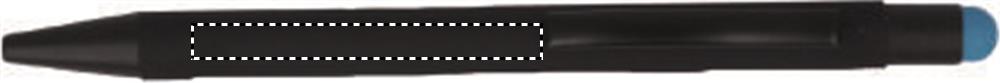 Aluminium penna med gummerad lackad yta och tryck funktion. Skaftet har under den svarta färgen motsvarande färg som touch toppen vilket gör att märkningen vid lasergravering får motsvarande färg. Blått bläck i patronen.
