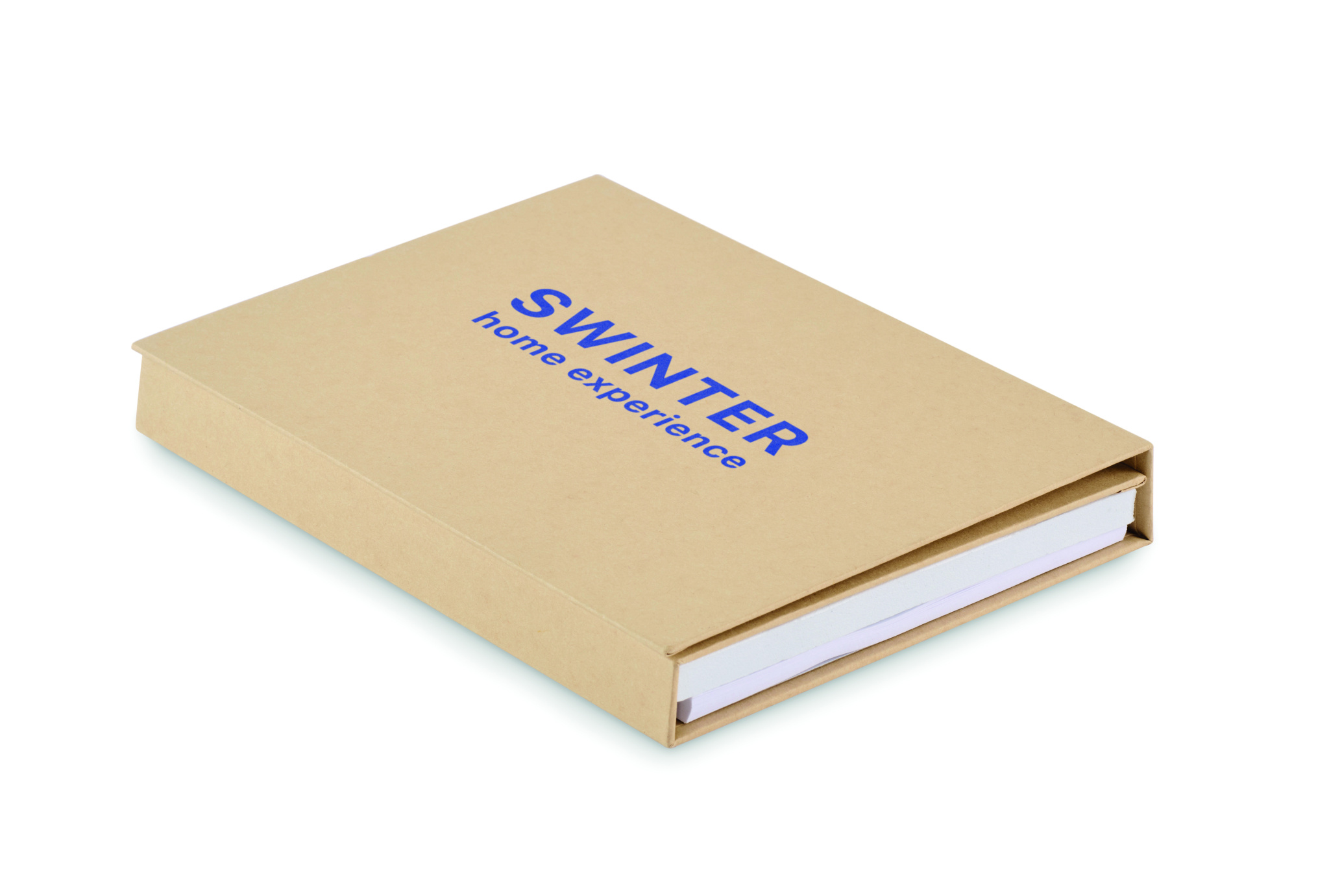 Skriv- & anteckningsset med omslag av återvunnen kartong. 70 linjerade ark av återvunnet material. Anteckningsblock, memolappar och sidmarkörer. Pennor med pappershylsa och ABS-delar, ABS-pennvässare, 2 träpennor, trälinjal 15cm, suddgummi och gradskiva.