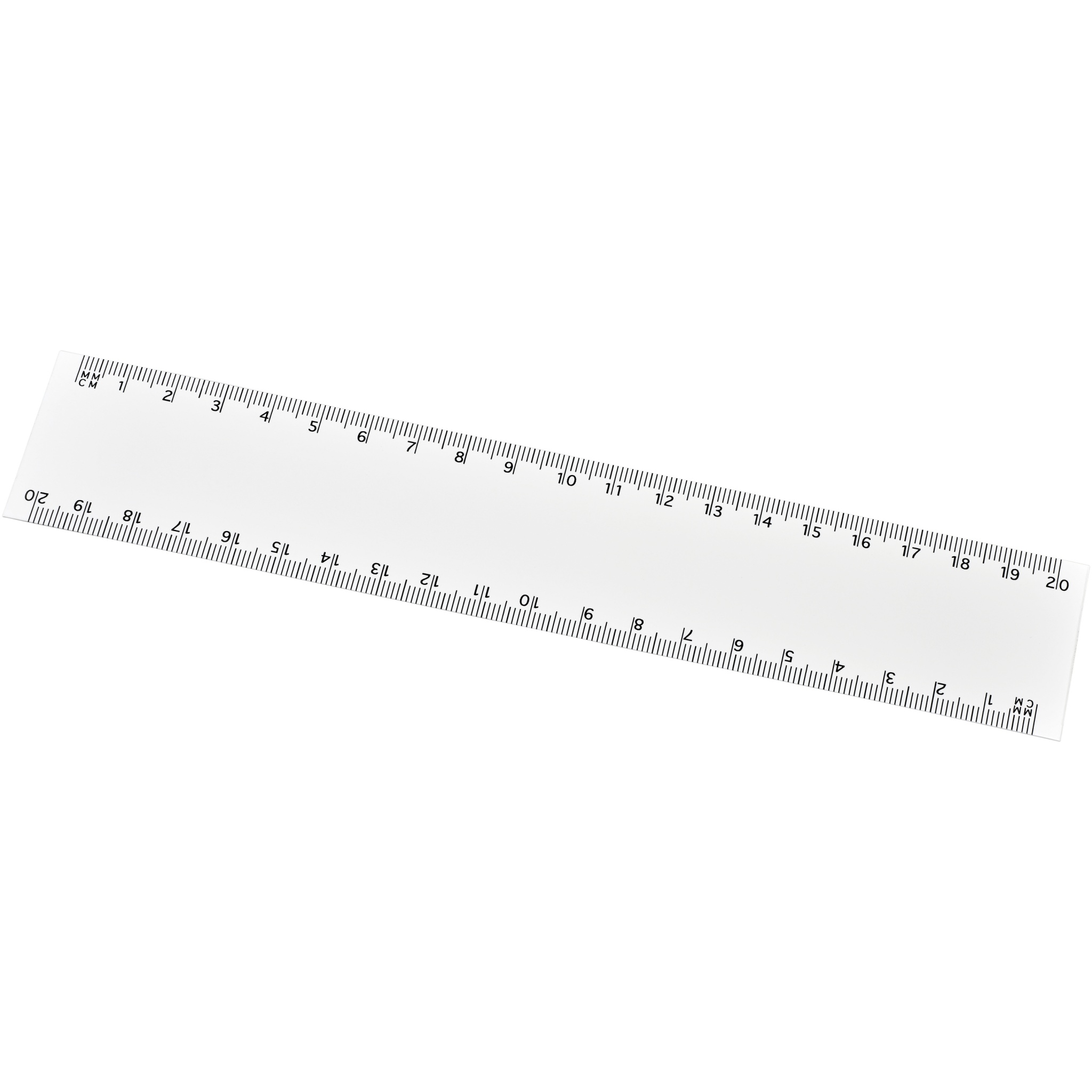 Flexibel och lätt plastlinjal tillverkad i syntetiskt papper på 450 g/m2 med markeringar både i tum och centimeter. Syntetiskt papper 450 g/m². Observera att linjalmarkeringarna skrivs ut tillsammans med tryck, linjaler som beställs utan tryck kommer inte att ha markeringar.