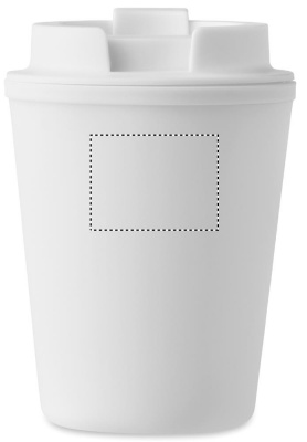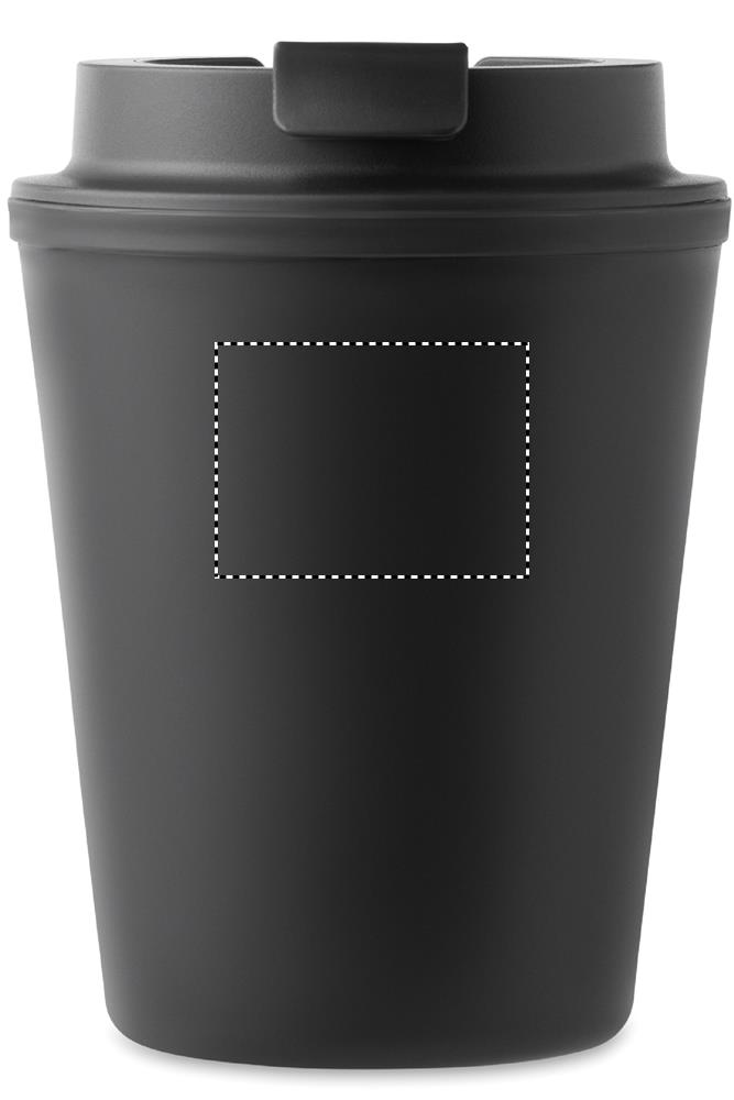 Dubbelväggsbägare med lock i återvunnen PP. Volym: 300 ml.