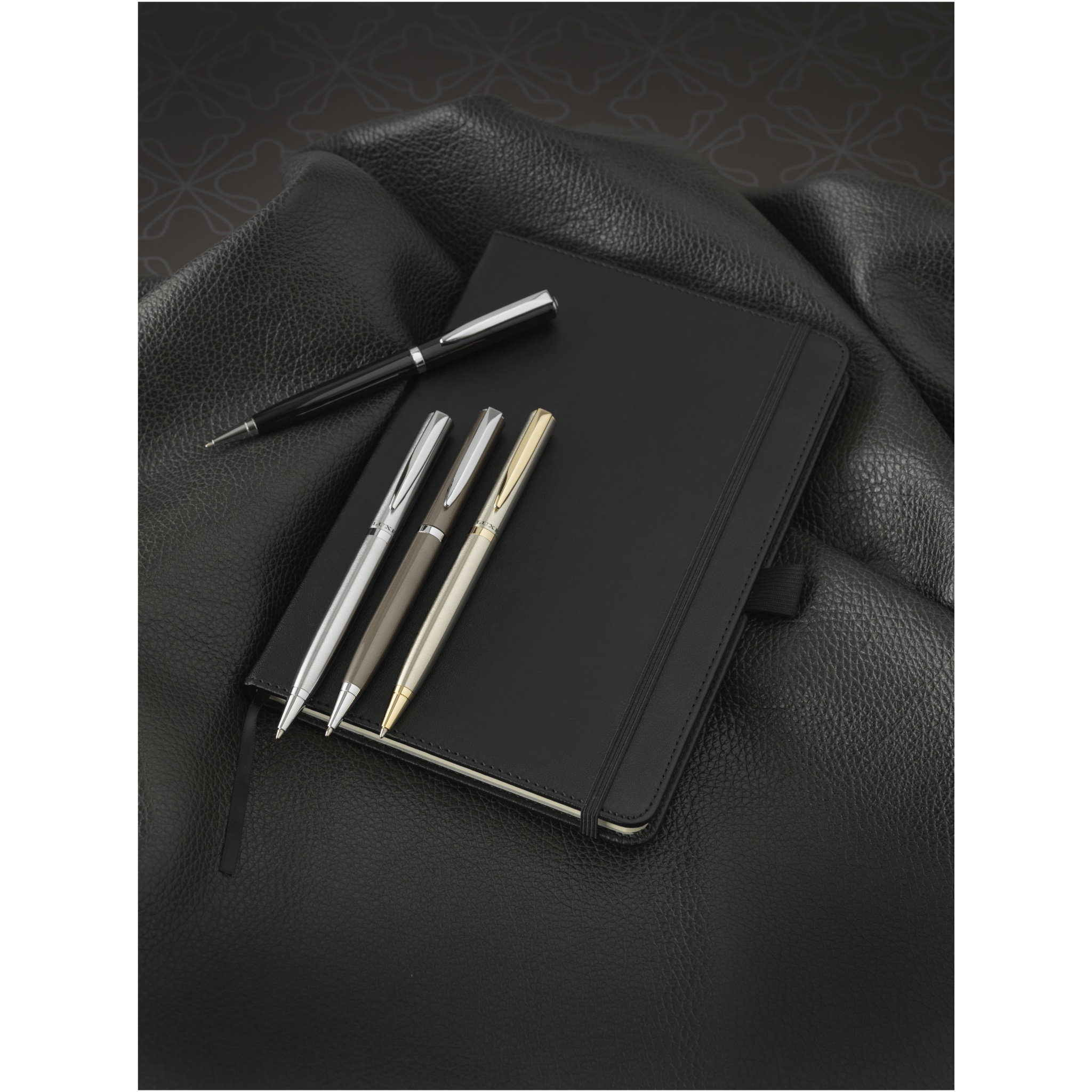 Bound anteckningsbok A5. Exklusivt designad anteckningsbok (A5-storlek) med 80gsm, 80 ark gräddfärgat papper med invändig ryggficka och pennögla. Förpackade i en "LUXE" presentförpackning. Läderimitation.
