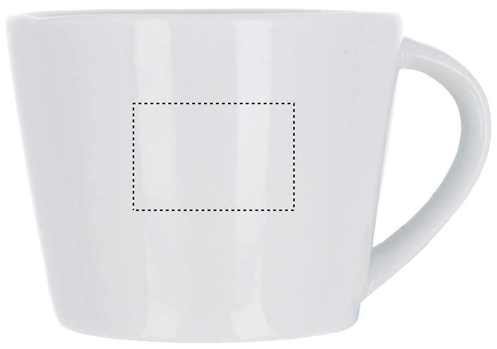 Cappuccino kopp, konformad, med fat i porslin. Kopp kapacitet: 160 ml. Tampotryck tål ej diskmaskin. Keramisktransfer tål maskindisk. Levereras i bulk förpackning.