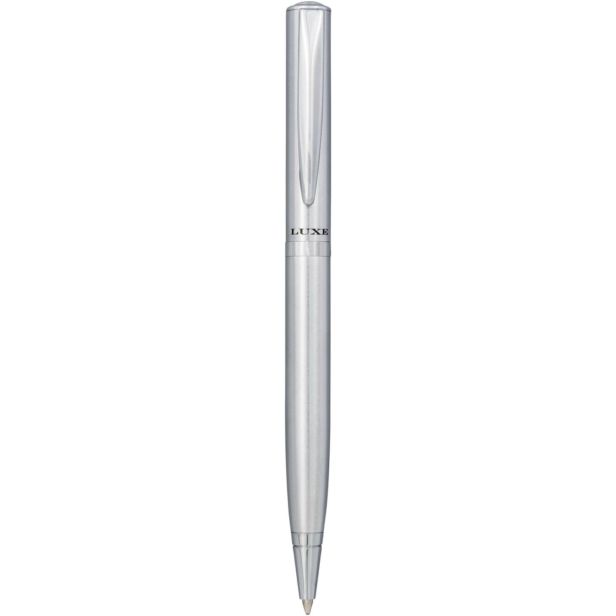 City kulspetspenna. Exklusivt designad och lätt kulspetspenna, tillgänglig i matt borstad guldyta med guldfärgade accenter och matt borstat silver med kromfärgade accenter. Inkl. svart påfyllning i premiumkvalitet och förpackad i en "LUXE" presentförpackning (16.5x4.5x2.8 cm). Metall.