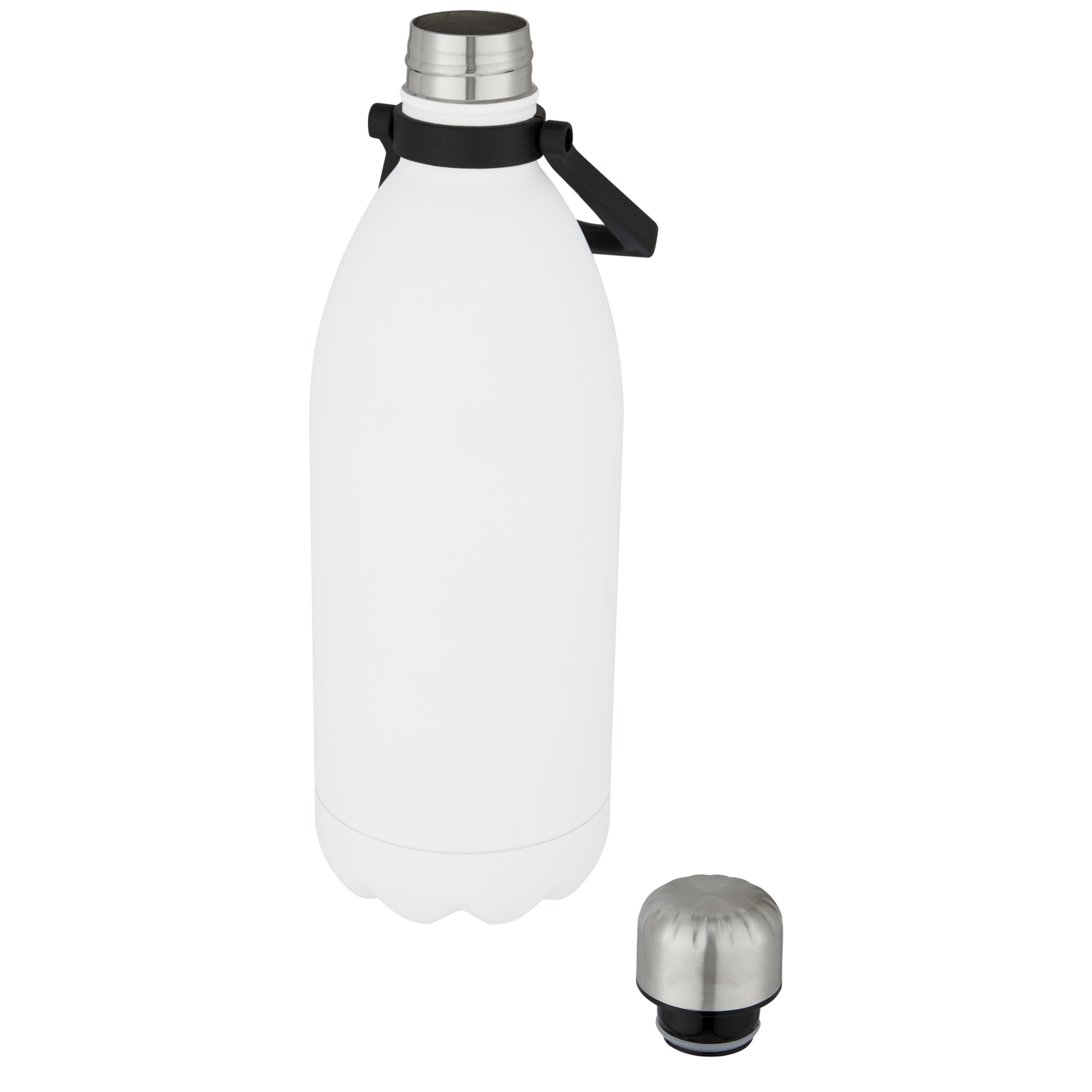 Extra stor vakuumisolerad flaska av rostfritt stål med en ikonisk design med ett bekvämt handtag som gör det lätt att bära. Det isolerade 18/8 rostfria stålet håller drycker varma eller kalla i flera timmar. BPA-fri, testad och godkänd enligt tysk lagstiftning om livsmedelssäkerhet (LFGB). Testad och godkänd för ftalatinnehåll enligt REACH-förordningarna. Volymen är 1,5 liter. Handdisk rekommenderas. Levereras i en återvunnen presentförpackning av kartong.