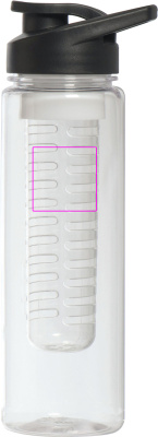 Stor, läckagesäker dricksflaska BPA-FRI (kapacitet 700 ml) med avtagbar fruktinsats. I locket finns en stor dricksöppning med stängning och ett bärhandtag integrerat. Vi trycker din logotyp på flaskan.