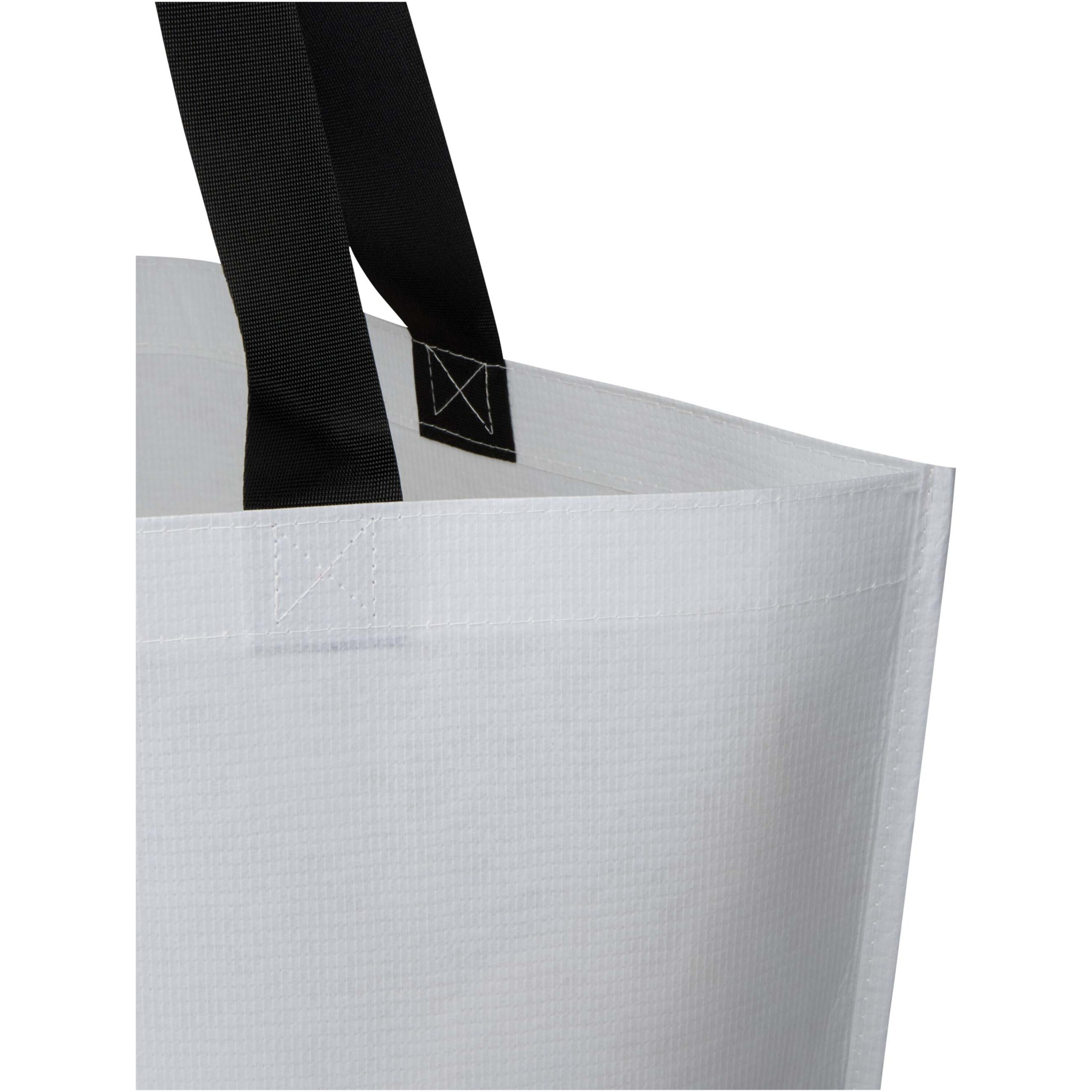 Den överdimensionerade tygväskan Duo med dubbellaminerad botten är tillverkad av 150g/m2 GRS-certifierad RPET och erbjuder förbättrad hållbarhet och vattentålighet när det verkligen gäller. Den har ett rymligt öppet huvudfack, robusta förstärkta handtag och en bred botten för ökad kapacitet. Den är utformad för att bära upp till 15 kg och är ett snyggt och pålitligt alternativ för matinköp, strandutflykter, picknickar eller weekendresor. Volymkapacitet: 30 liter.