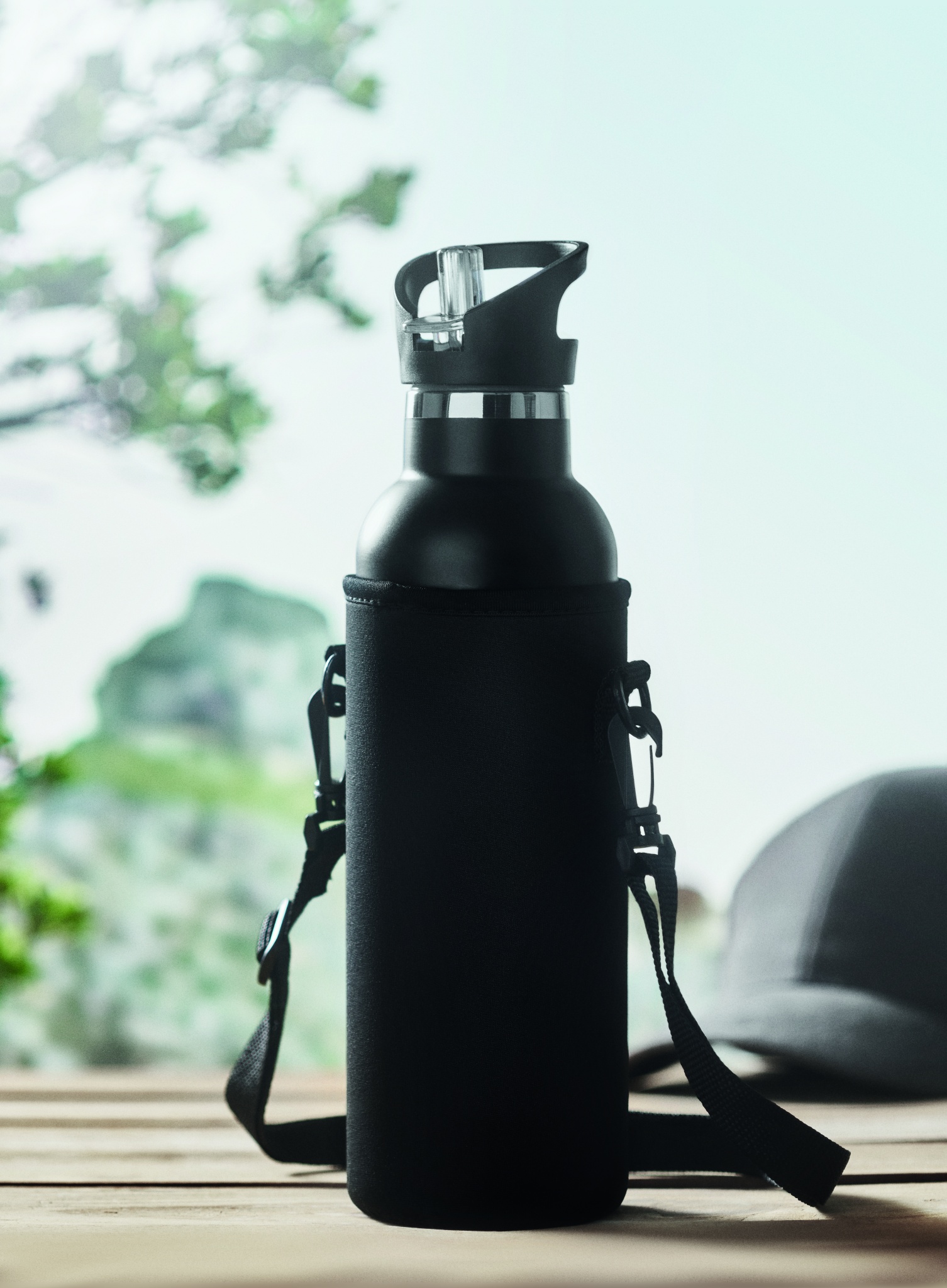 Isolerad termoflaska i rostfritt stål för både varma och kalla drycker. Levereras med dubbla skruvlock. Ett bambulock och ett extra lock med sugpip. Neoprenfodral med axelrem. Volym: 700 ml. Handdiskas.
