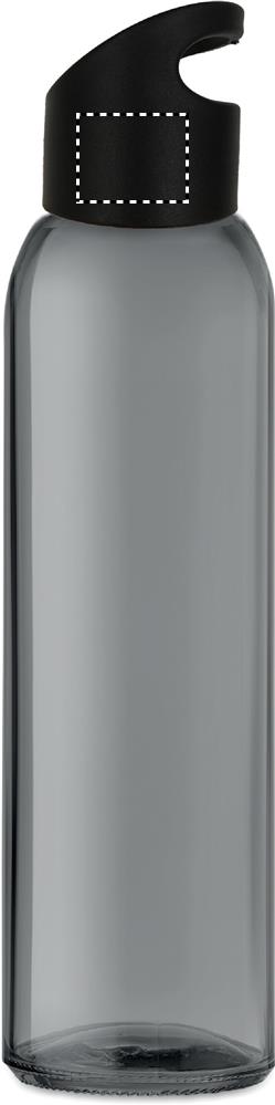 Glasflaska med praktiskt lock i PP plast som kan hängas på en krok. Vattenflaskan har en volym på 470 ml. Ej anpassad för drycker med kolsyra. Läckagefritt.