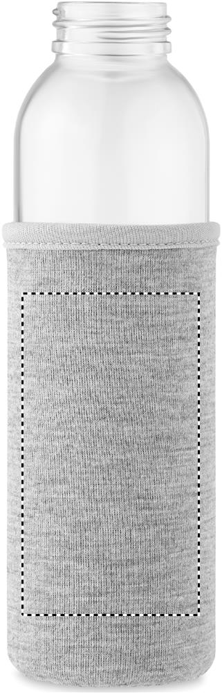 Glasflaska i återvunnet glas med neoprenpåse och PP-lock med silikonhängare. Läcker inte. Volym: 500ml.